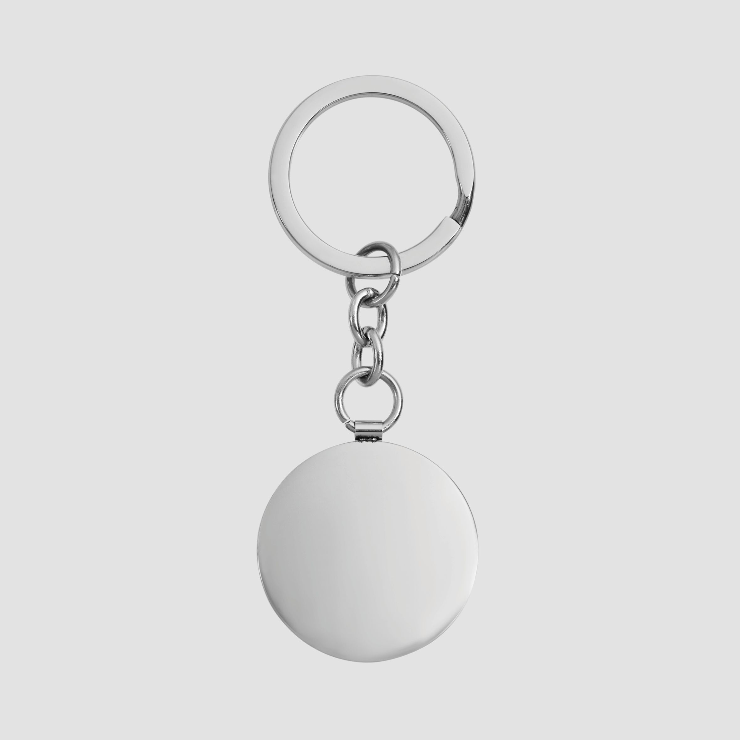 Productinformatie "Edelstahl Schlüsselanhänger mit Gravurplatte, rund, silberfarbig"