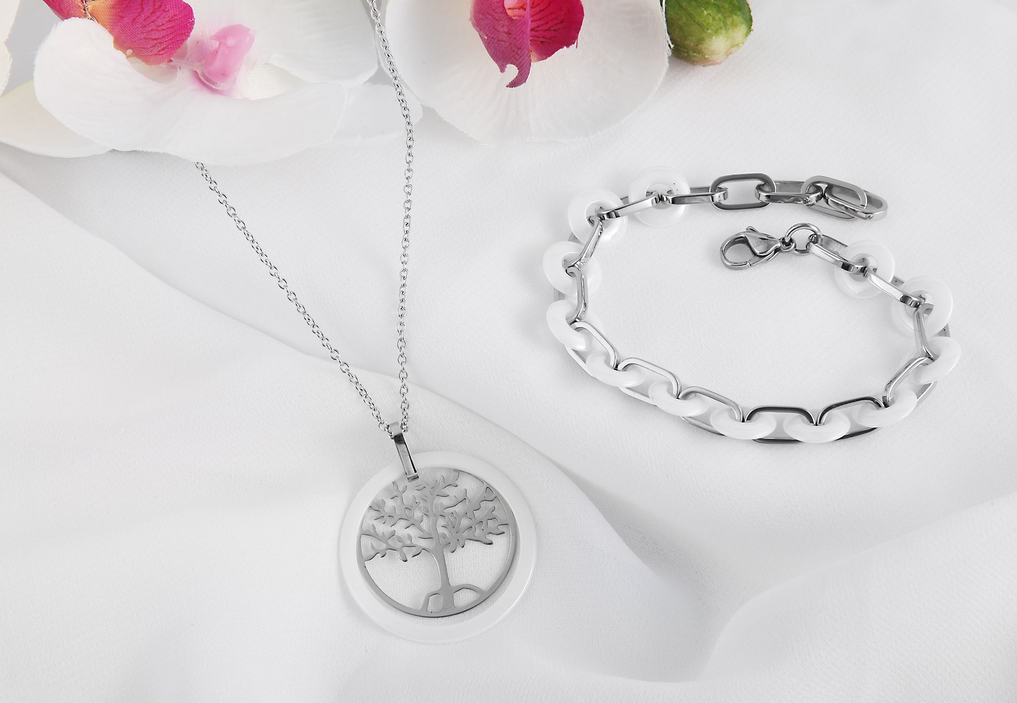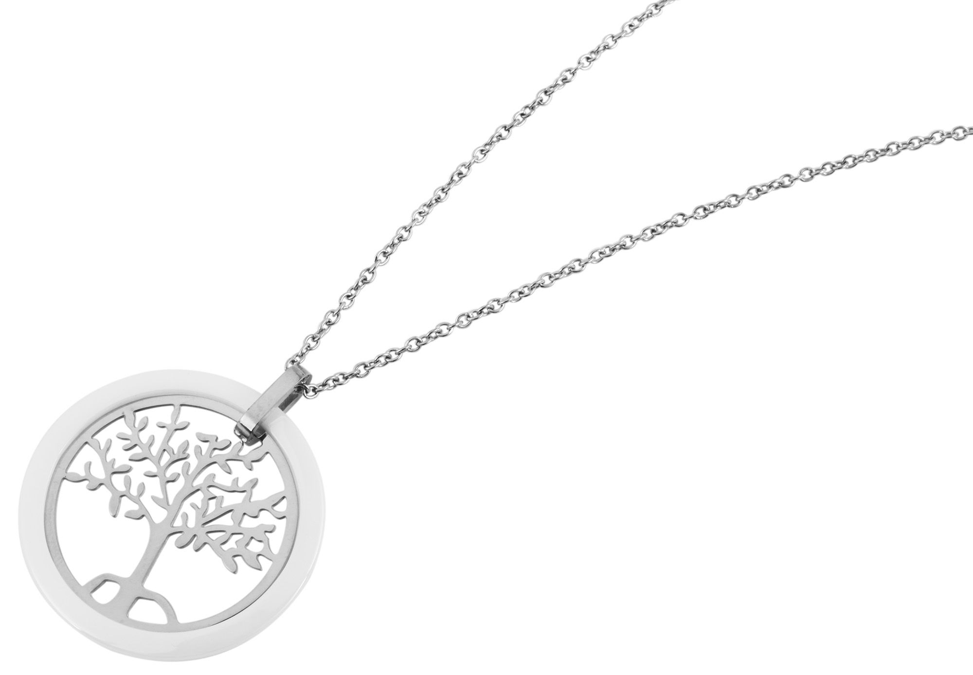 Productinformatie "Edelstahlkette mit Keramikanhänger, Lebensbaum, 43+5cm, silberfarbig"