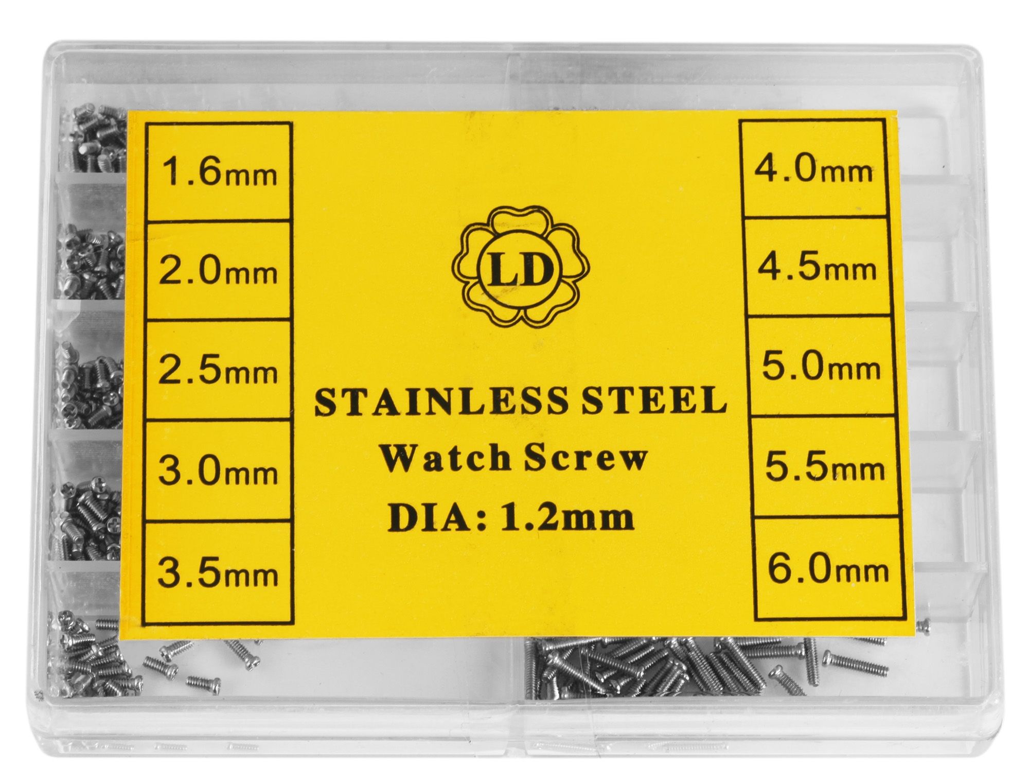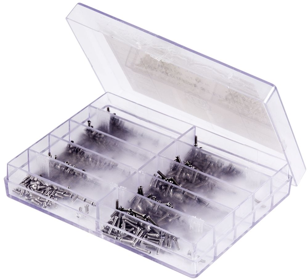 Productinformatie "Edelstahlschrauben im Sortierkasten, 1,6mm - 5,5mm je 100 Stück"