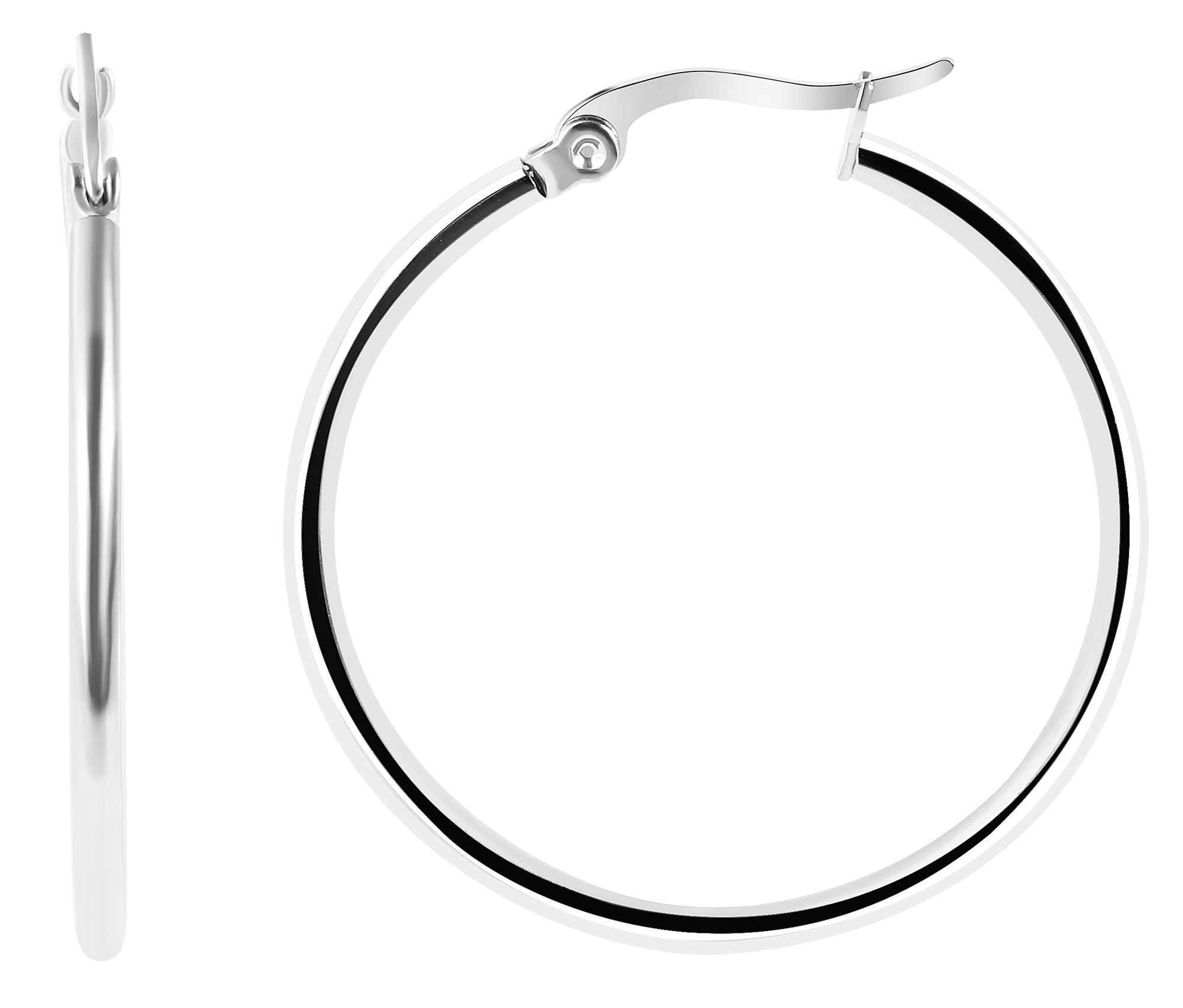 De Akzent hoepeloorbellen zijn gemaakt van roestvrij staal en zijn zilverkleurig. Het materiaal is roestvrij en garandeert een lange levensduur. De oorbellen vallen op door hun minimalistische design; de rondingen en het glanzende oppervlak van de oorsieraden trekken zeker de aandacht. Hoop oorbellen zijn een absolute must-have en kunnen gecombineerd worden voor alle gelegenheden en gelegenheden. De oorbellen kunnen met een eenvoudig slotje aan het oorgat worden bevestigd. De pin wordt door een open oogje geschoven en naar binnen gevouwen. De hoepels hebben een diameter van 35 mm en een dikte van 2 mm.