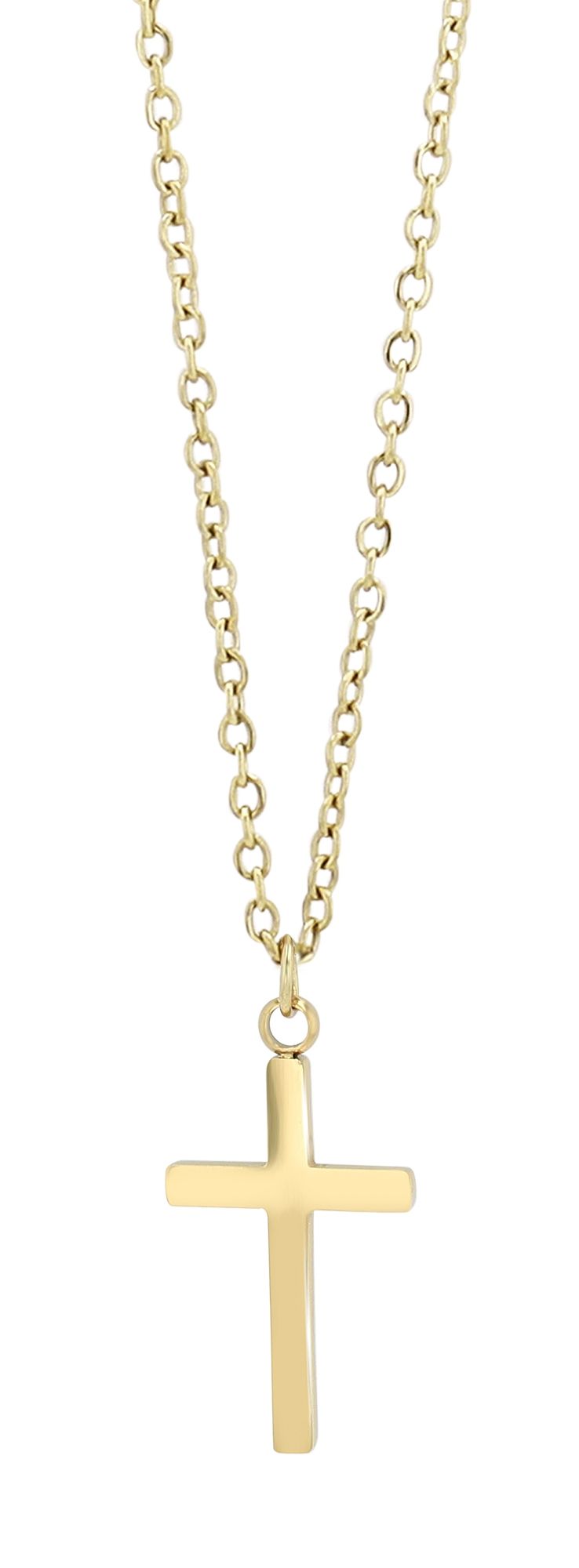Productinformatie ""Eila" - Kreuz mit Edelstahlkette, 42+5cm, Gold"