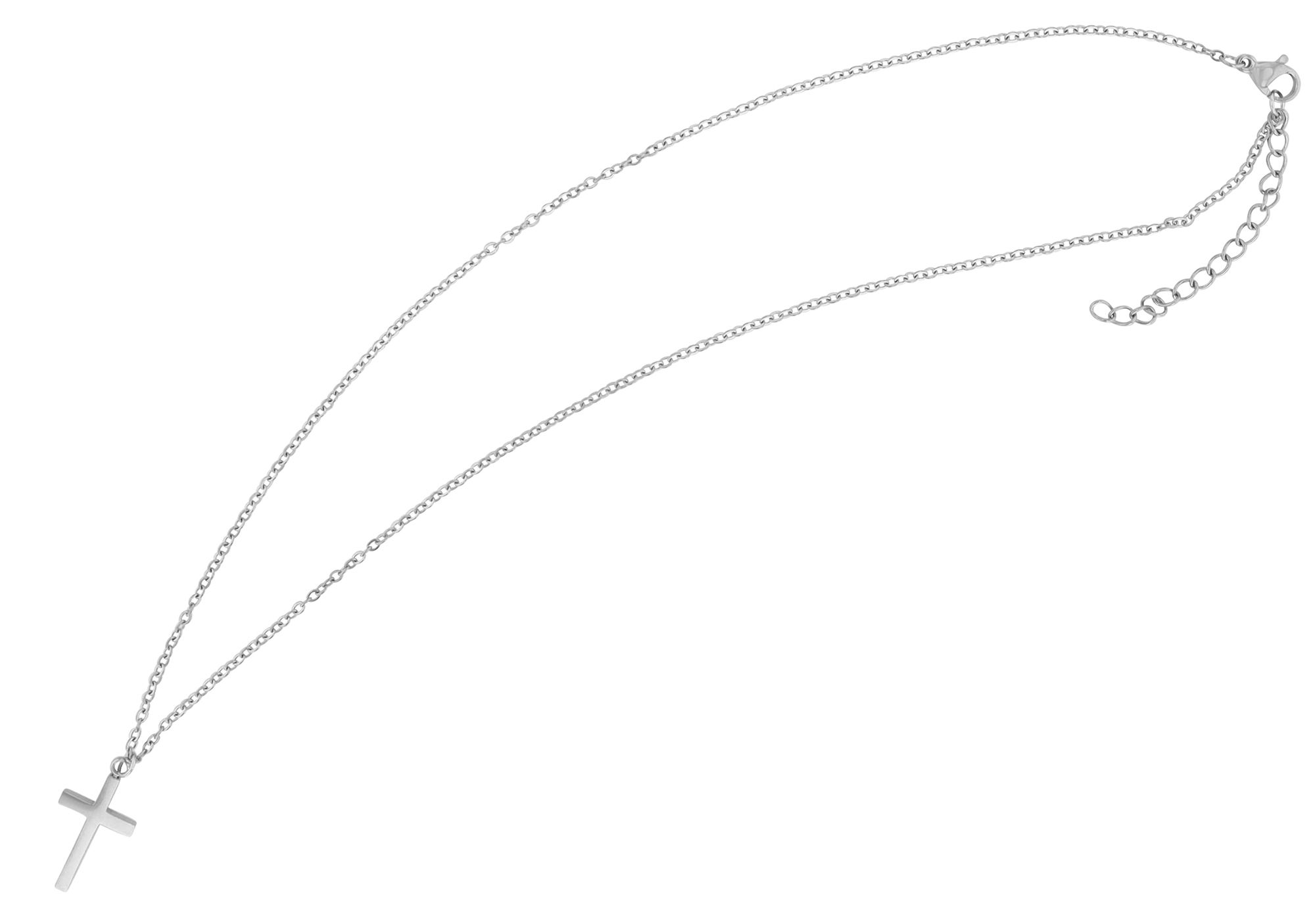 Productinformatie ""Eila" - Kruis met roestvrijstalen ketting, 42+5cm, zilver"