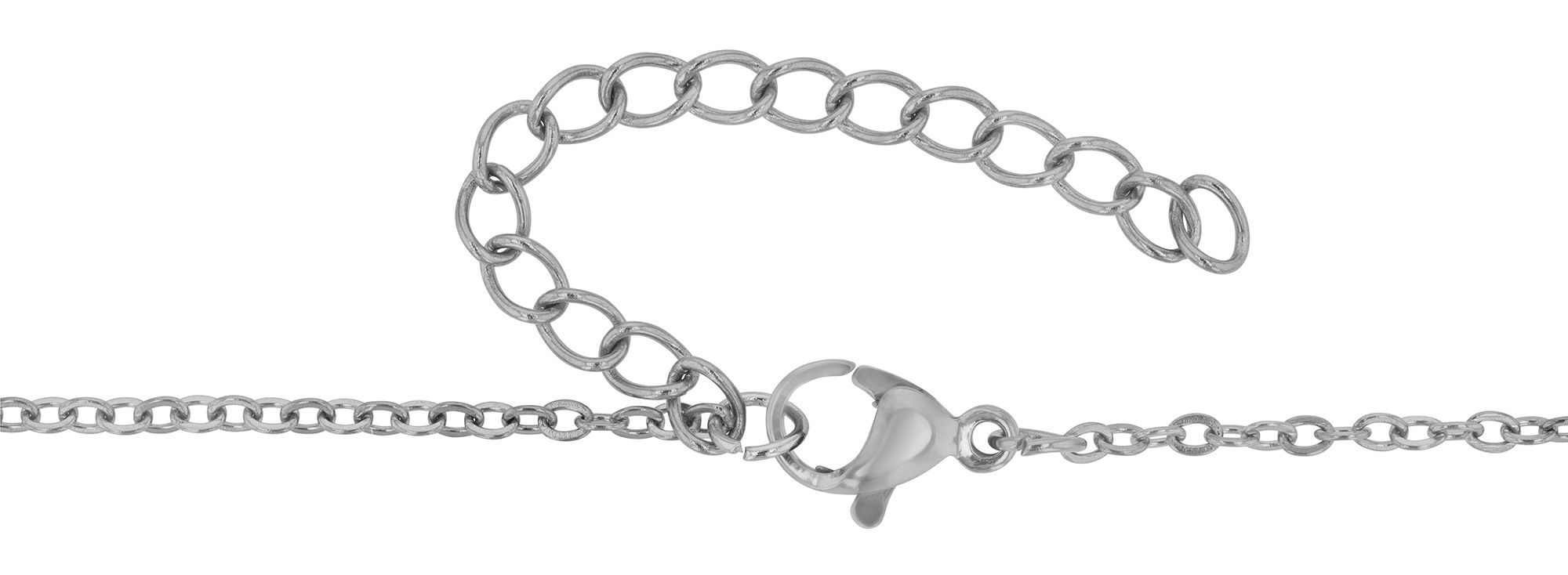 "Eila", gemaakt van hoogwaardig roestvrij staal en met een lengte van 42 cm en een dikte van 1,5 mm, is comfortabel om te dragen en past perfect bij verschillende outfits en gelegenheden. Met een extra verlenging van 5 cm kan deze ketting ook worden aangepast aan de gewenste lengte, zodat hij perfect past bij elke drager.