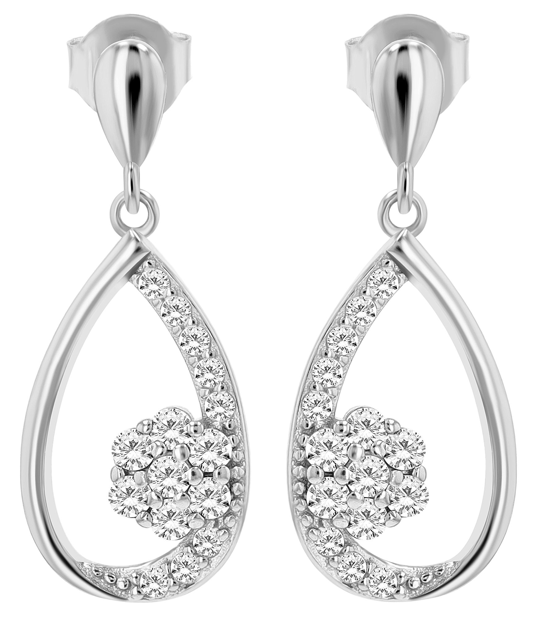 Productinformatie ""Eira" 925/- echt zilveren oorbellen, zirkonia - wit, gerhodineerd"