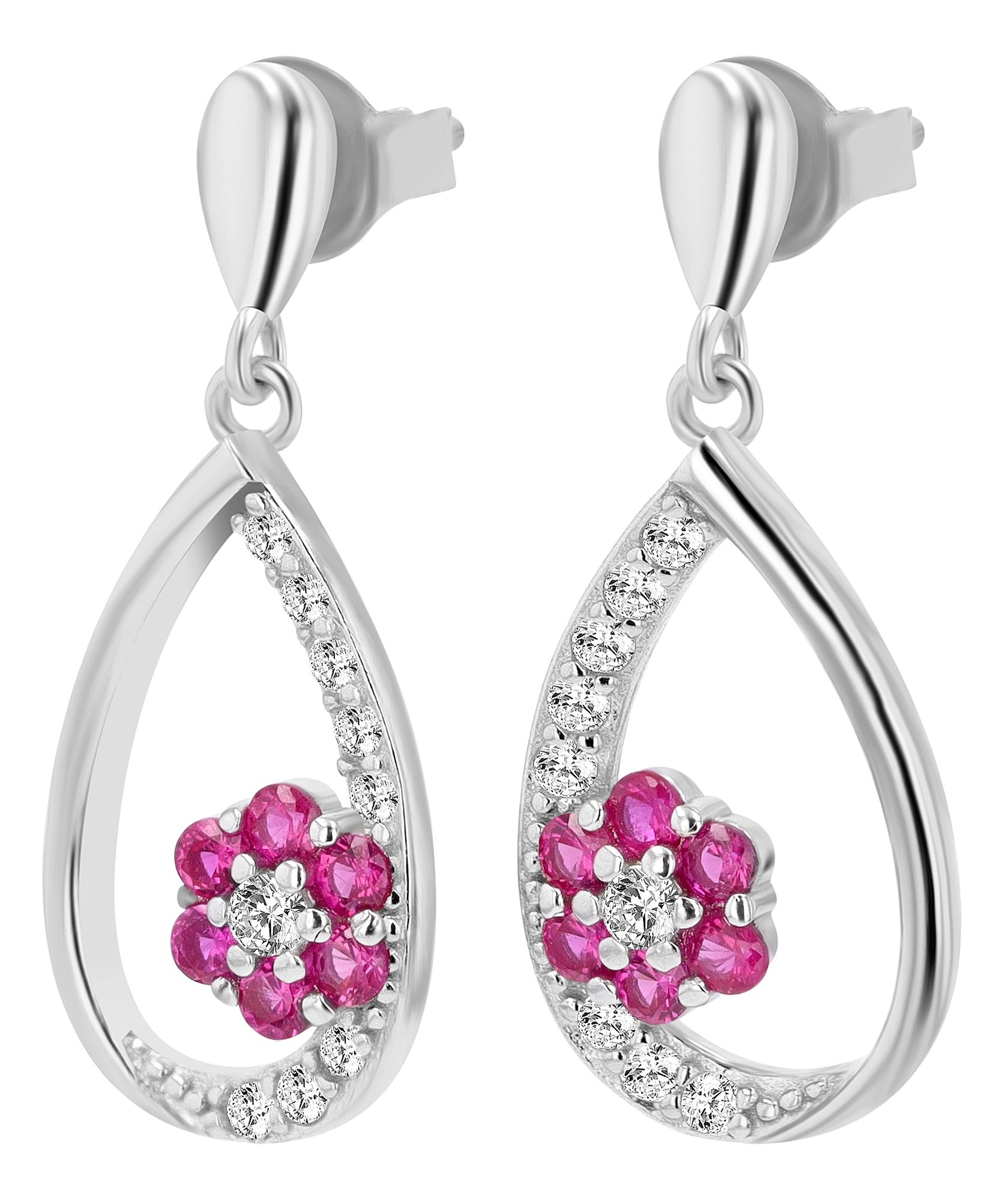 Productinformatie ""Eira" 925/- echt zilveren oorbellen, zirkonia - wit/roze, gerhodineerd"