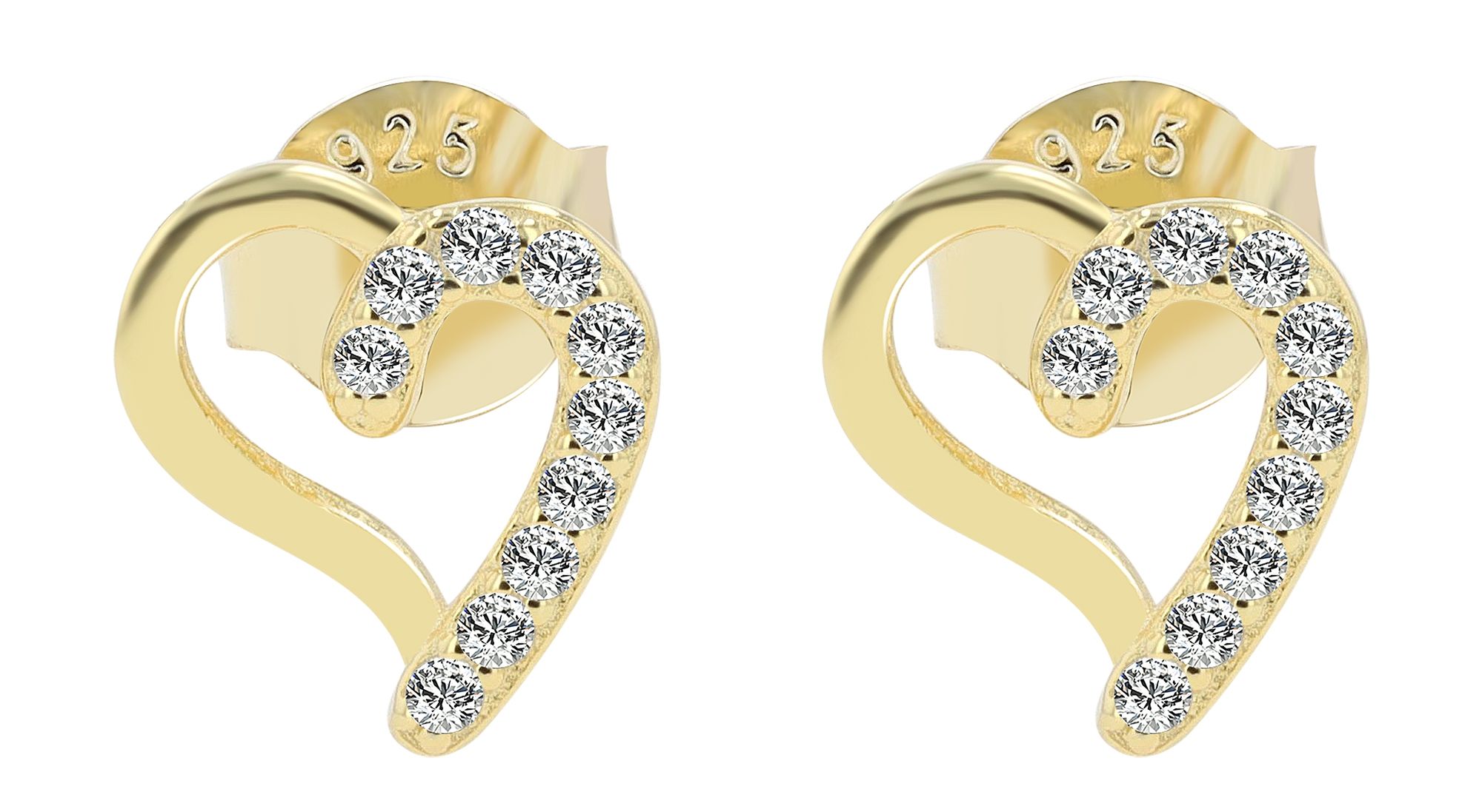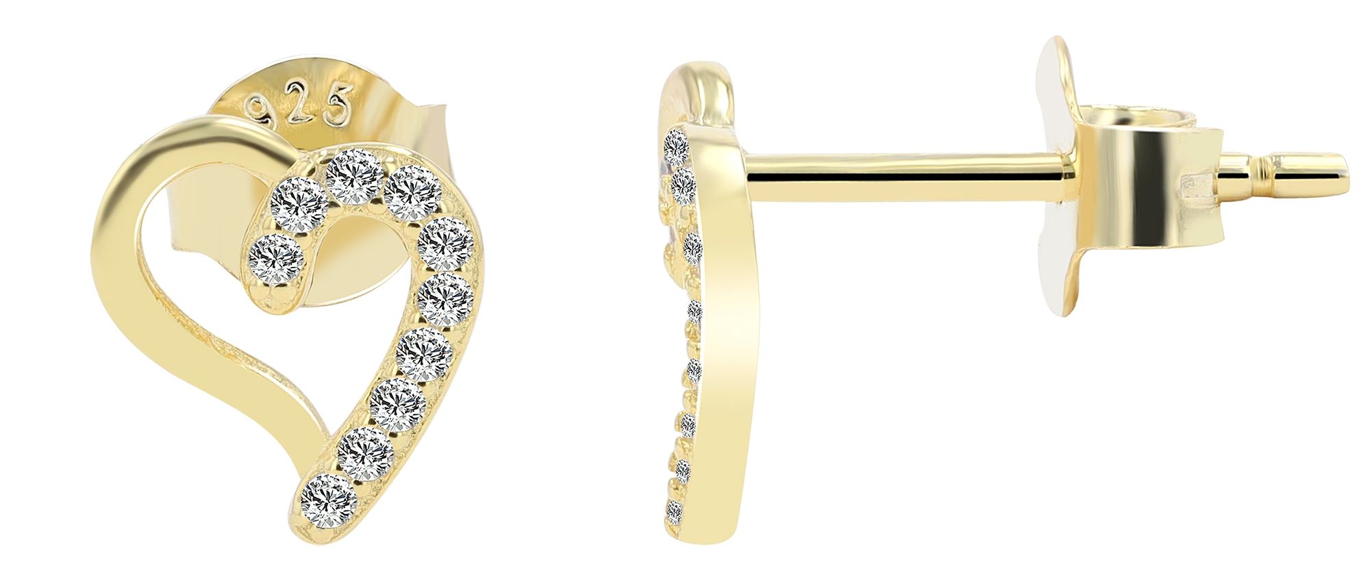 Productinformatie ""Eirlys" 925/- echt zilveren oorbellen, hart met zirkonia, verguld"