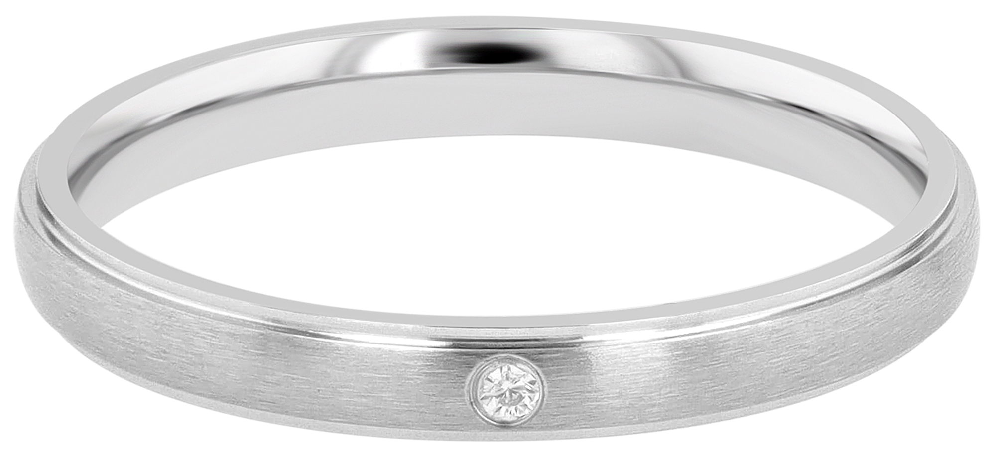 Het gehele oppervlak van de zilverkleurige ring heeft een matte afwerking, waardoor het een moderne uitstraling heeft. Als bijzonder hoogtepunt is de ring bezet met een fonkelende similietsteen, die zorgt voor een discrete maar stralende blikvanger. Met een breedte van slechts 3 mm en een materiaaldikte van 2 mm is de ring discreet maar stevig. Wil je van je ring een onvergetelijk cadeau maken? Maak er dan een heel persoonlijk sieraad van met een persoonlijke gravure.