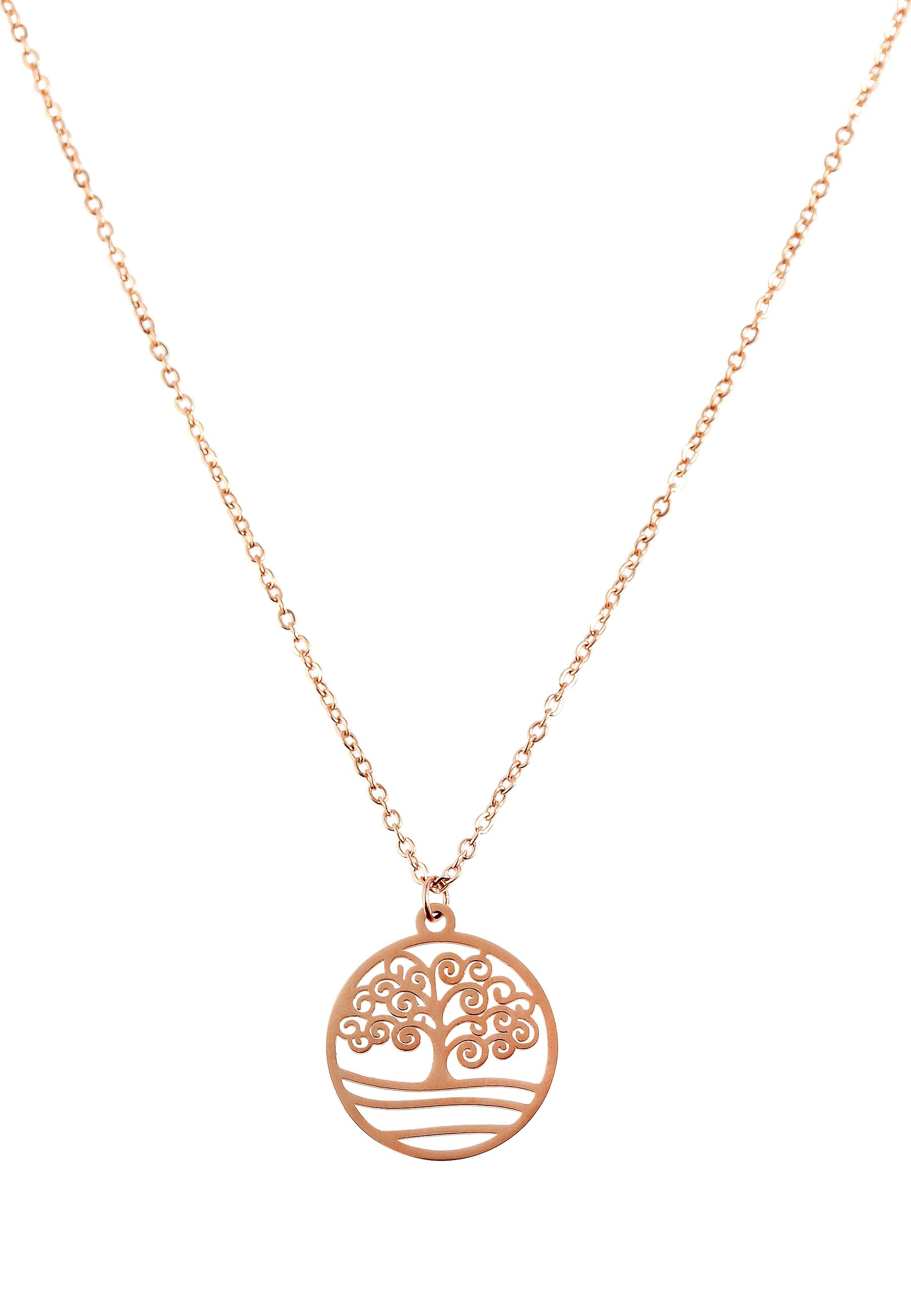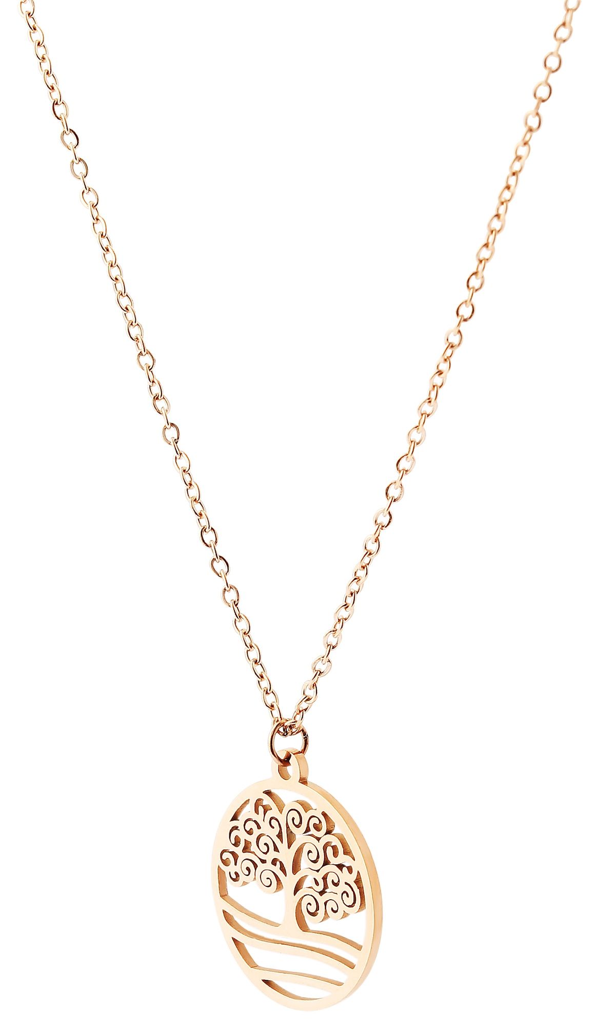 Productinformatie ""Eleha", roestvrij stalen collier, levensboom met hanger, lengte 43 cm, roségoudkleurig"