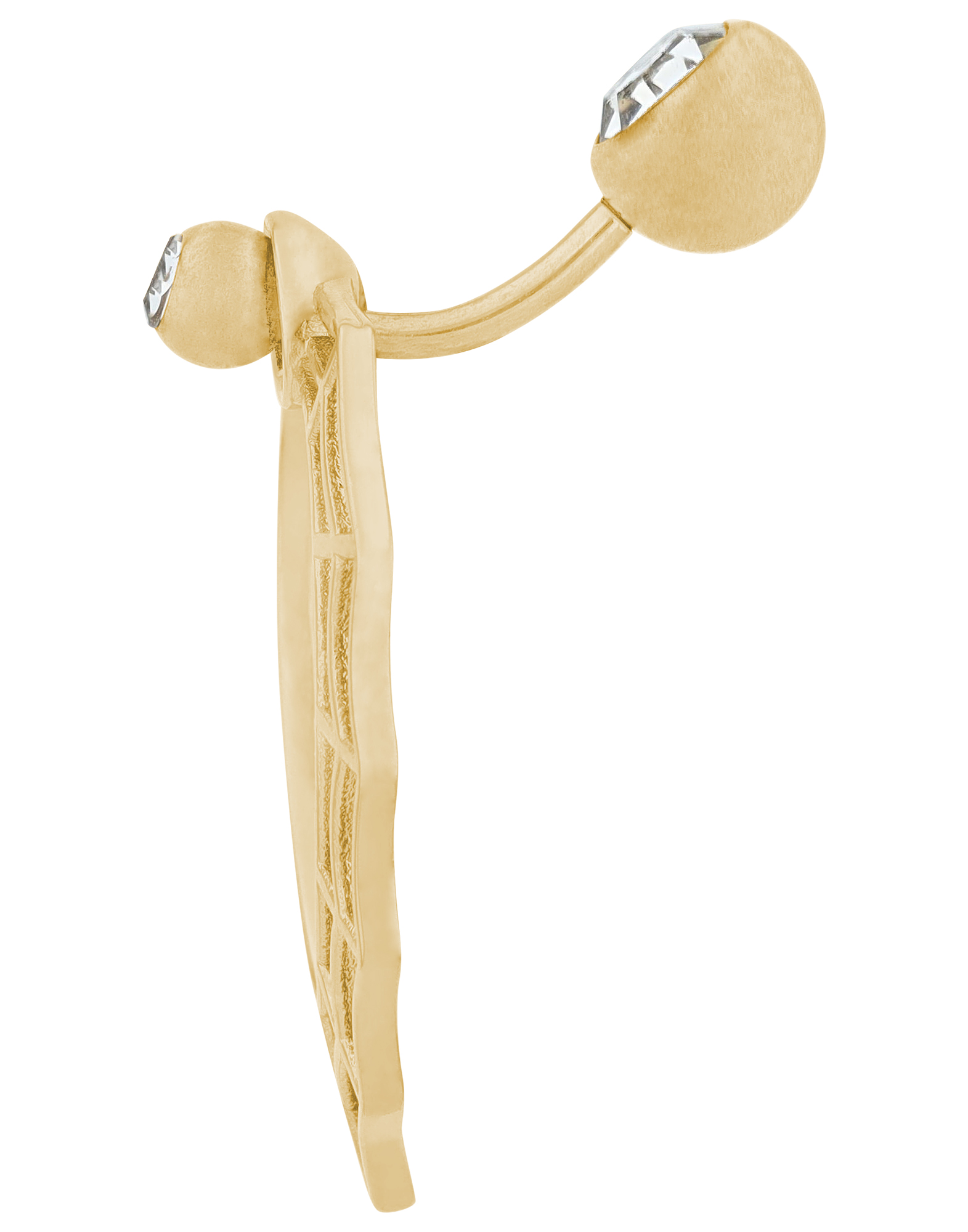 Creëer een stijlvol hoogtepunt met deze hoogwaardige roestvrijstalen navelpiercing. De 11 mm lange en 2 mm dikke staaf zorgt voor een comfortabele pasvorm en een stevige grip. Fonkelende zirkonia schittert aan beide uiteinden van het staafje en geeft het sieraad een glamoureuze touch. Het elegante hangerelement van 34 mm hoog en 23 mm breed is een bijzondere blikvanger, die zachtjes zwaait en zorgt voor een stijlvolle look. Kies uit twee aantrekkelijke kleurvarianten en geef je look een individuele touch.