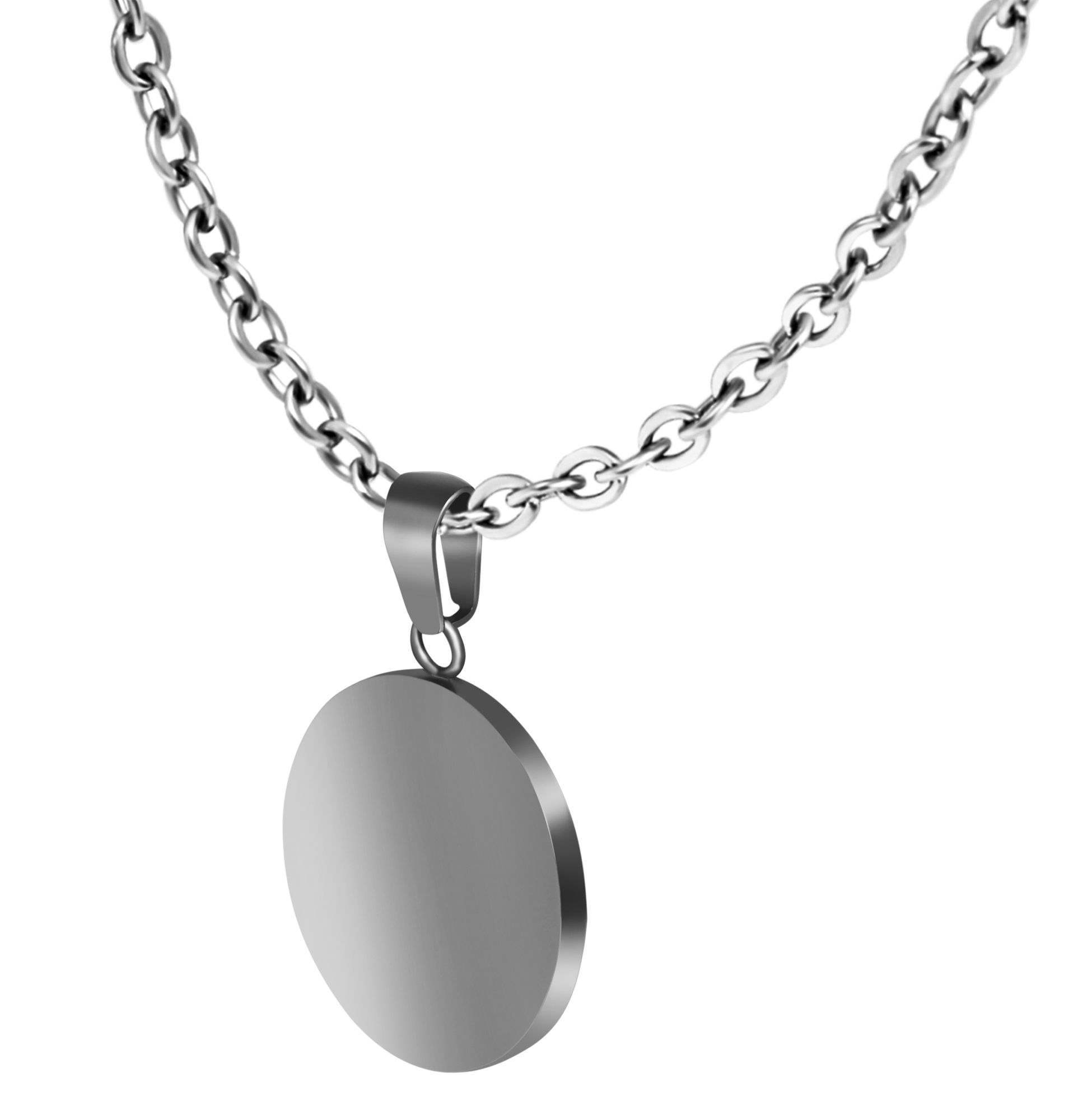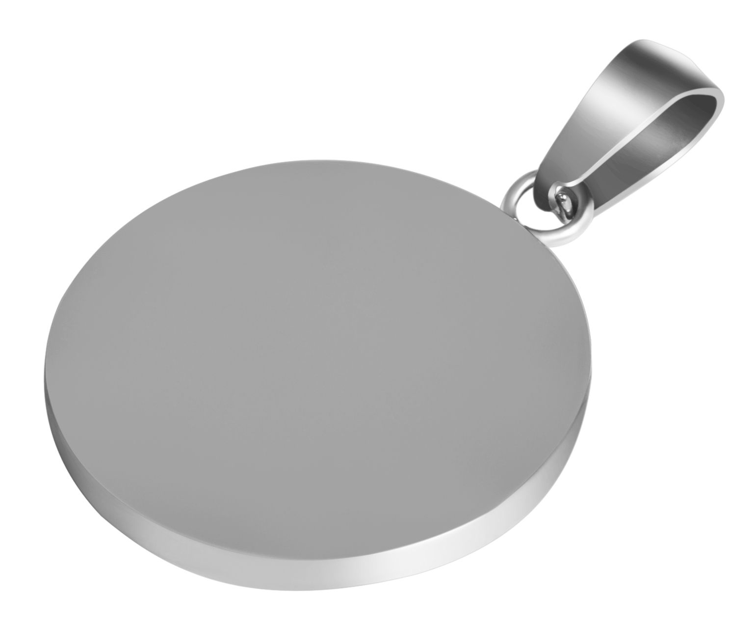 De ronde gegraveerde hanger van het merk Akzent is gemaakt van roestvrij staal. Het robuuste materiaal zorgt voor een lange levensduur, terwijl de hypoallergene eigenschappen de hanger zelfs voor mensen met allergieën tot een favoriet sieraad maken. Het oppervlak is hoogglans gepolijst en biedt ruimte voor allerlei gravures. De afmetingen van de ronde hanger zijn gebaseerd op een diameter van 20 mm en een materiaaldikte van 2 mm.