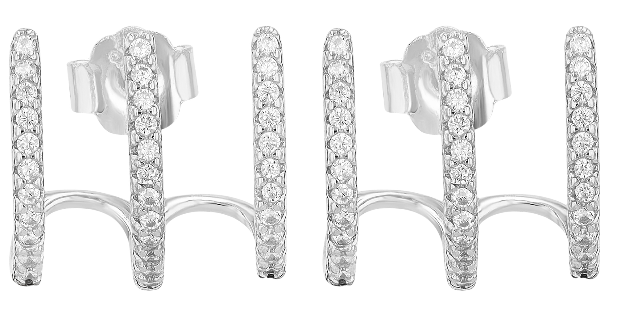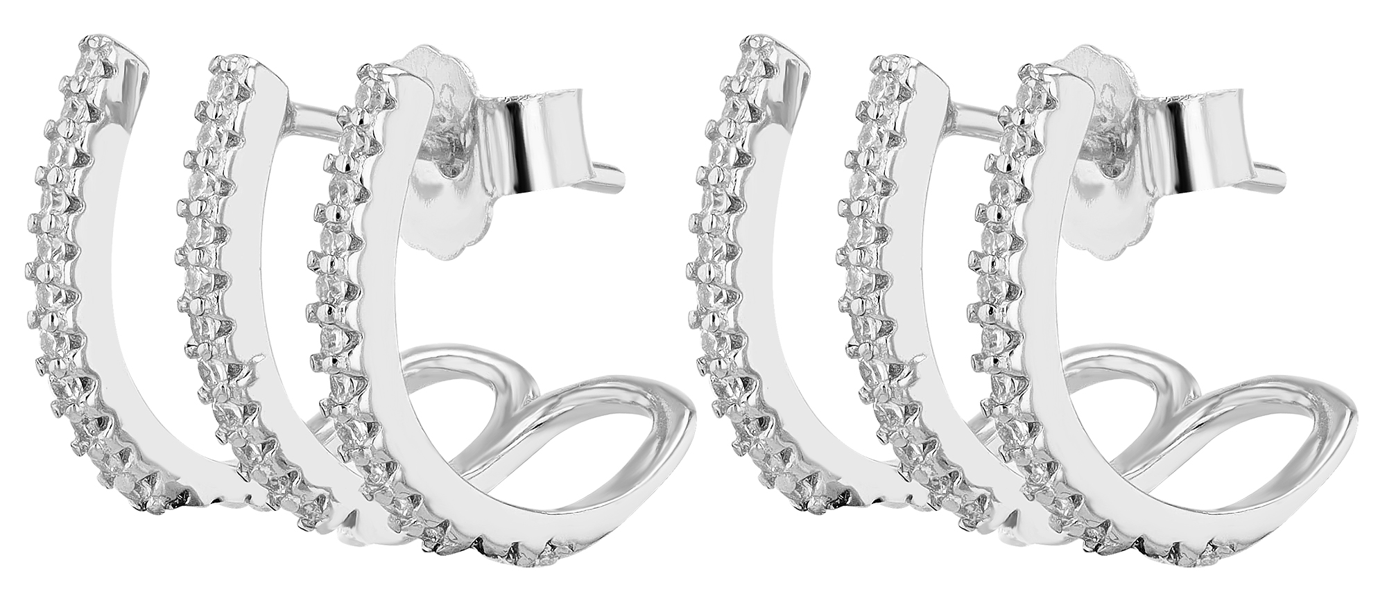 Productinformatie ""Eli" 925/- echt zilveren driedubbele halve hoepel oorbellen met knop, zirkonia, zilverkleurig, gerhodineerd"