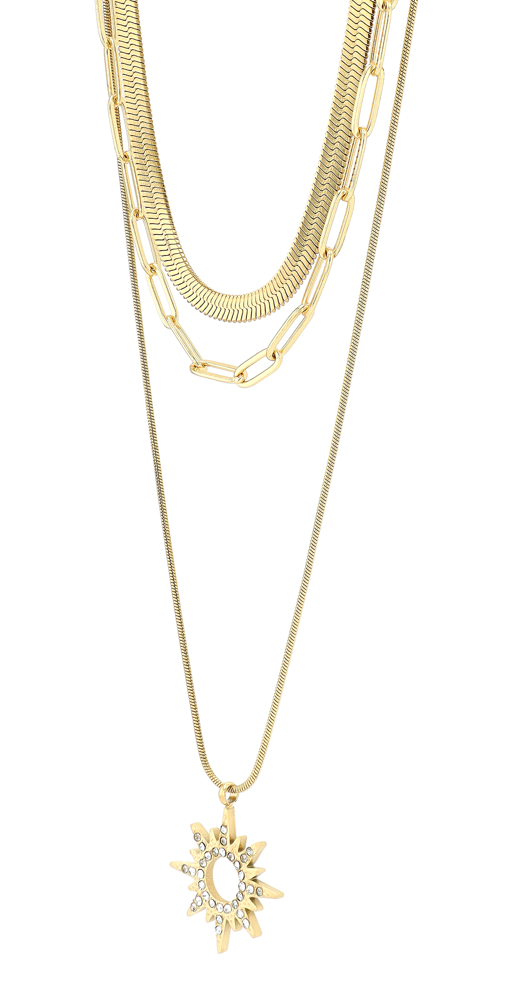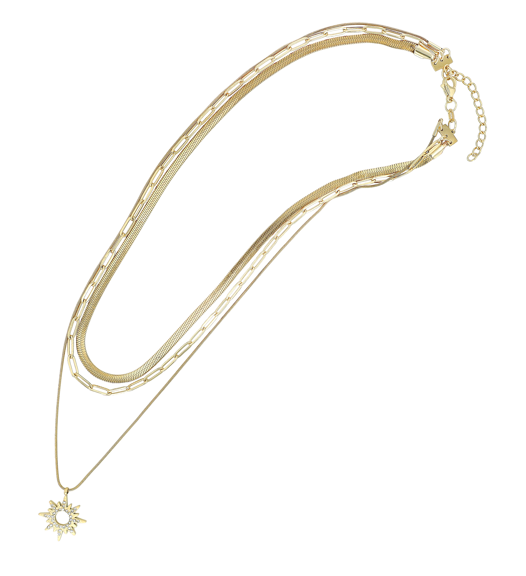 Productinformatie ""Eliana" Edelstahl Layering Kette mit Anhänger (Sonne), 40/ 42/ 50 + 5 cm, goldfarben"