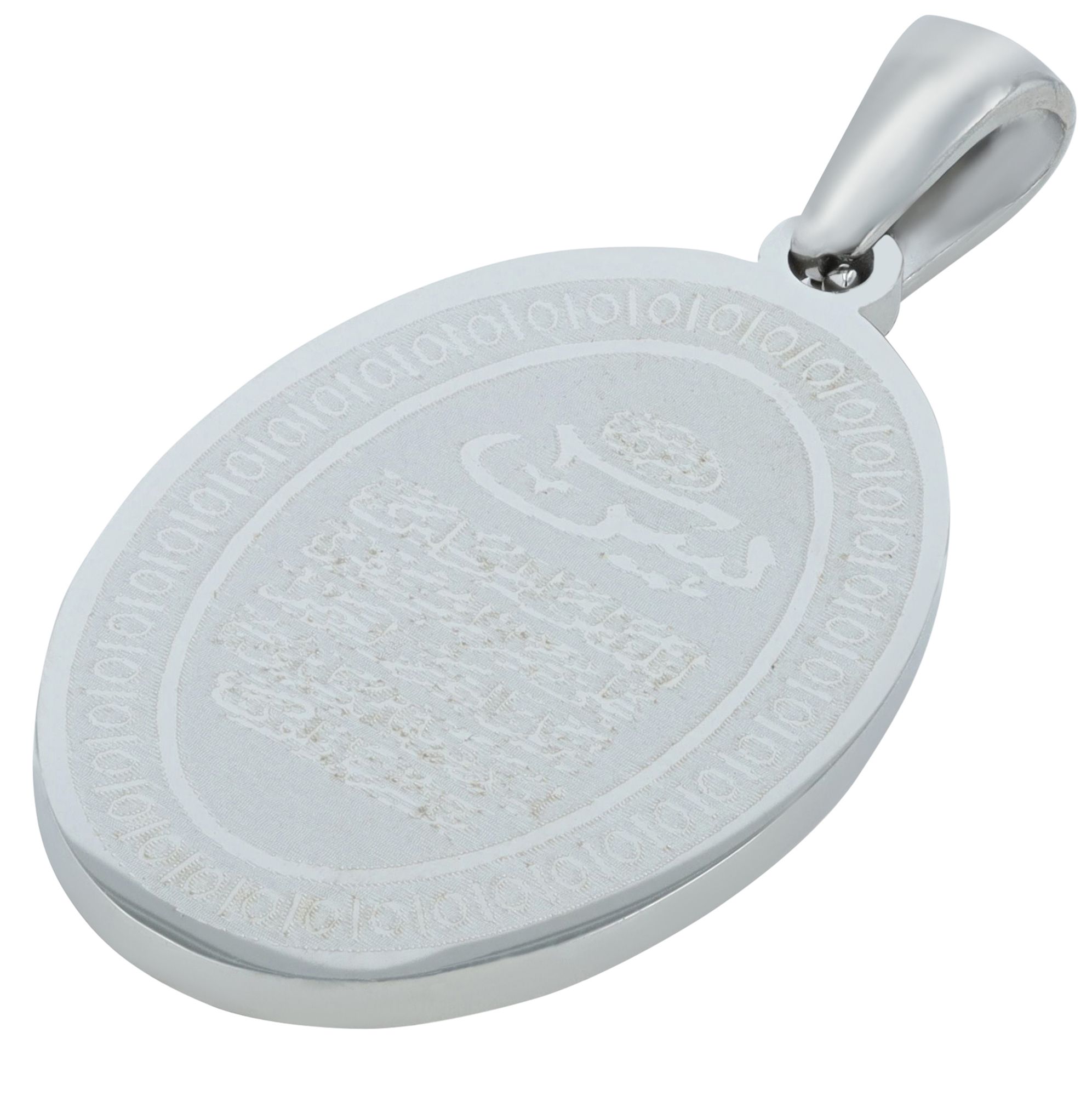 Productinformatie ""Elischa", Schutzanhänger mit Vers aus dem Koran, oval aus Edelstahl"