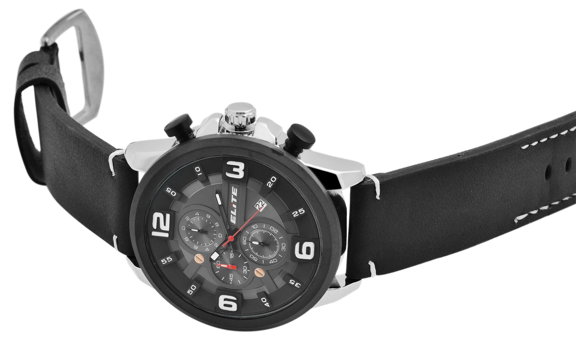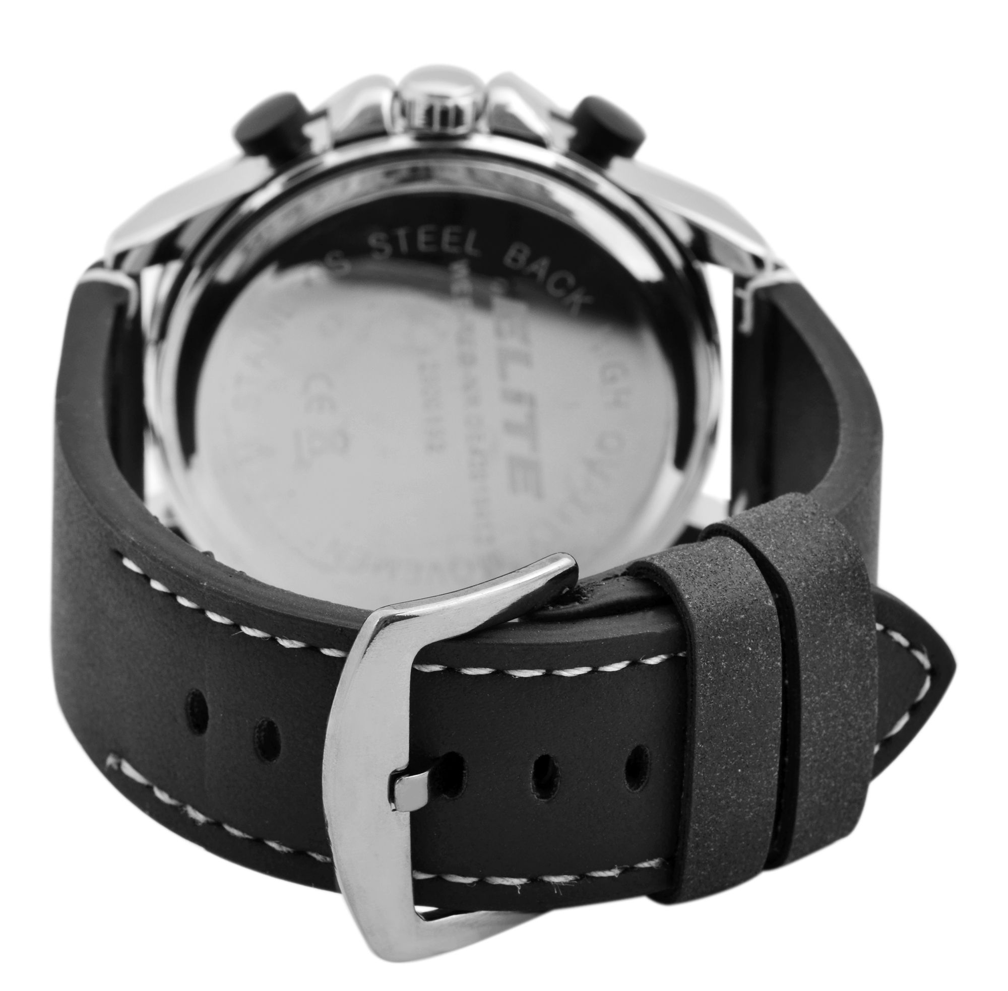 Productinformatie "Elite Herren Chronograph mit Lederimitationsband, 3ATM, Schwarz"