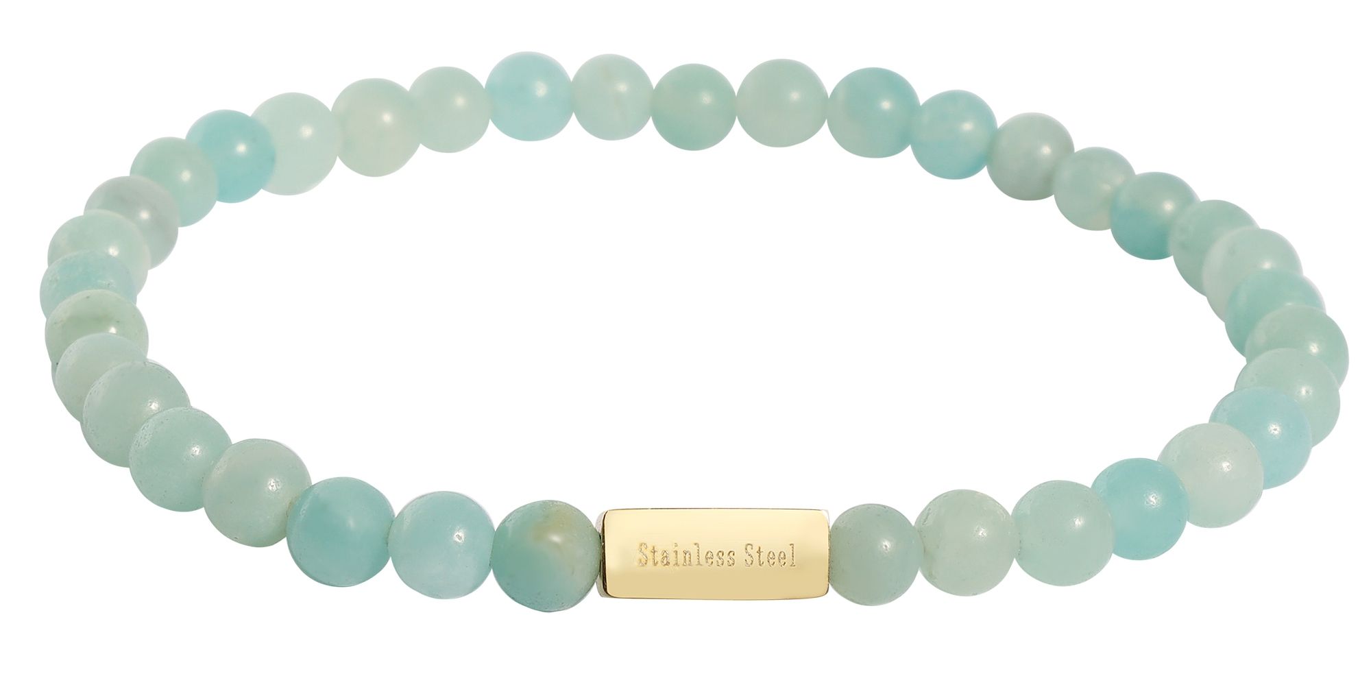 Productinformatie ""Elysia" Kugelarmband, Naturstein (amazonite), gravurfähiges Edelstahlelement - goldfarben"
