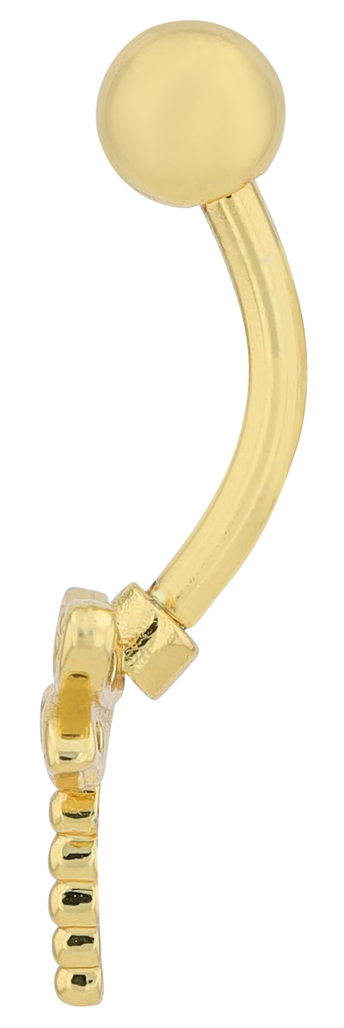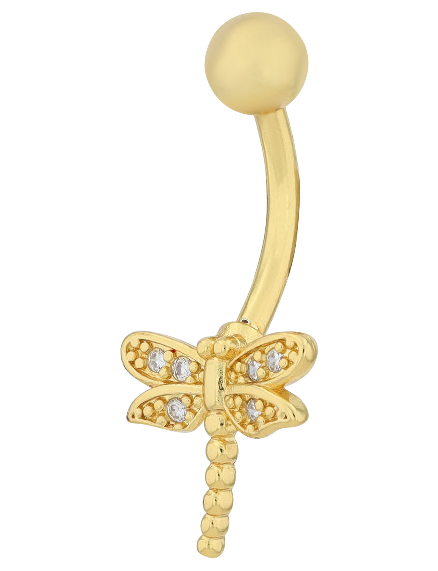Productinformatie ""Emy" Edelstahl-Bronze Bauchnabelpiercing, Länge 12 mm/ Stärke 1,8 mm, Libelle, Zirkonia, goldfarben"