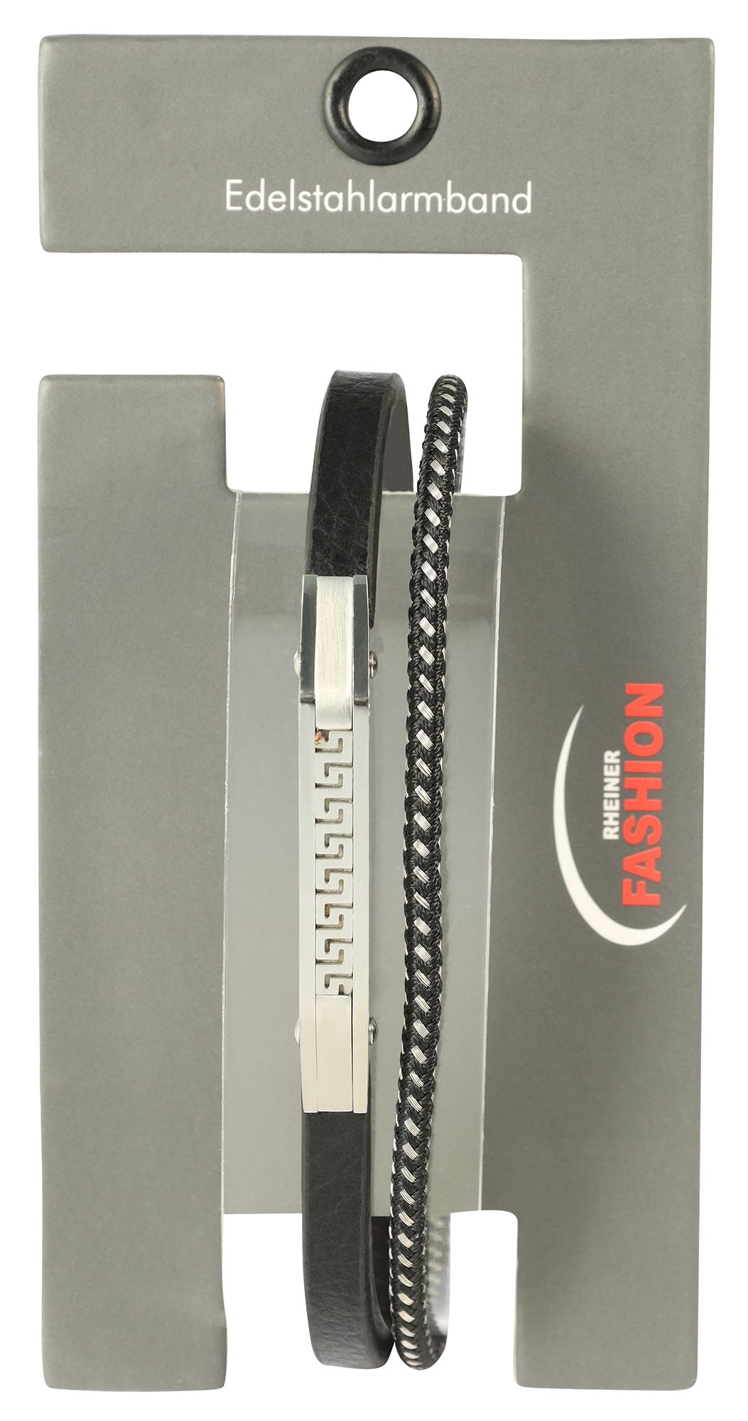 Productinformatie ""Ennio" armband van imitatieleer met roestvrijstalen elementen, 21 cm"