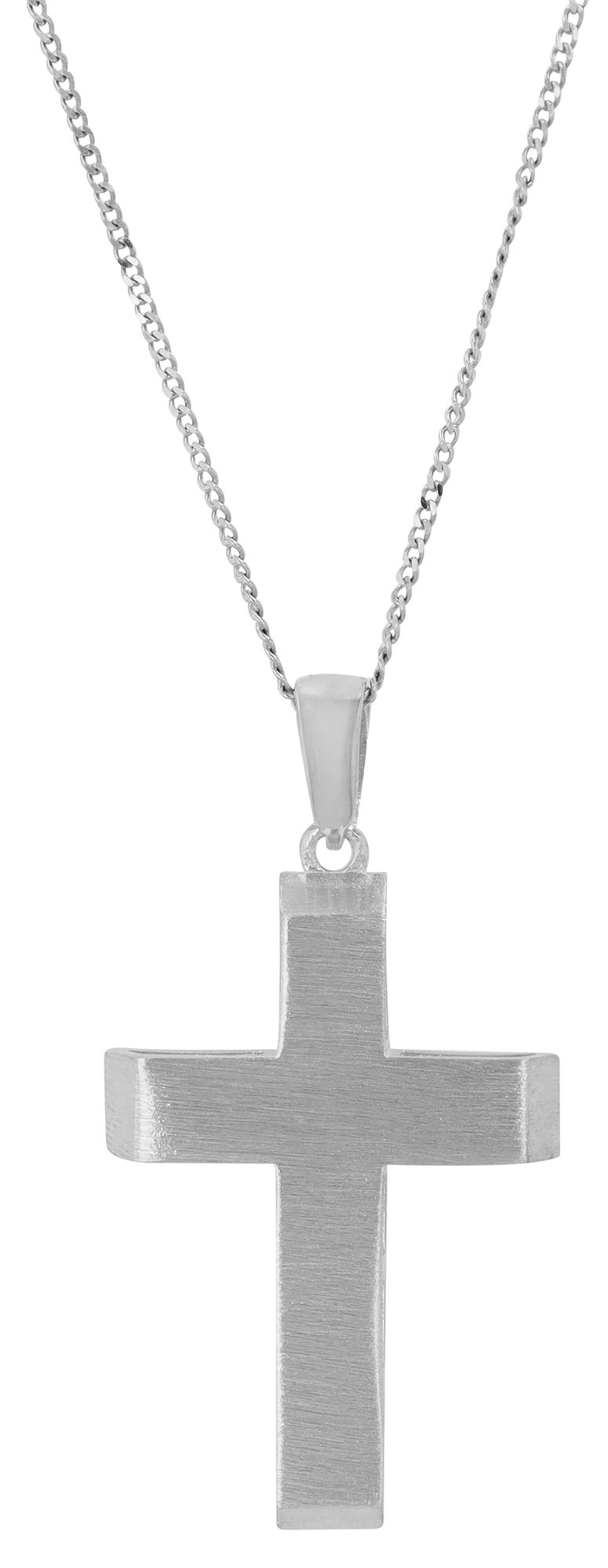 Met zijn krachtige look meet de hanger 32,5 x 21 x 4 mm (totale lengte met oogje 3,9 cm). De mat geborstelde afwerking geeft het kruis een moderne touch, terwijl de afgeschuinde randen een bijzondere diepte creëren. Ondanks de dikte van 4,5 mm blijft de hanger comfortabel om te dragen omdat hij hol is aan de binnenkant. De rasterlook aan de zijkant zorgt voor geraffineerde accenten en geeft het kruis een dynamische structuur.