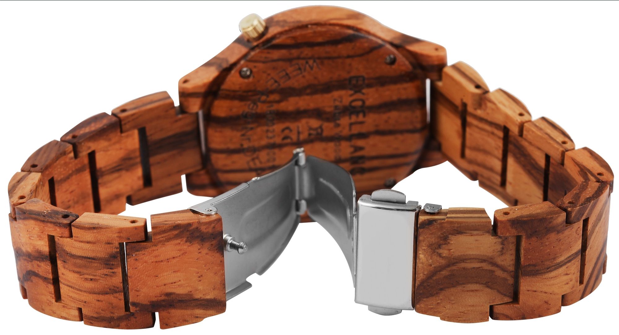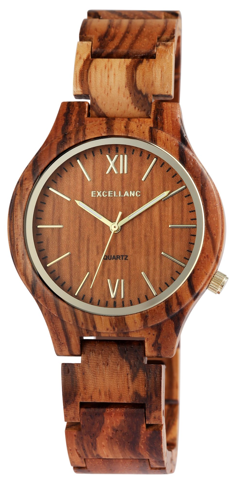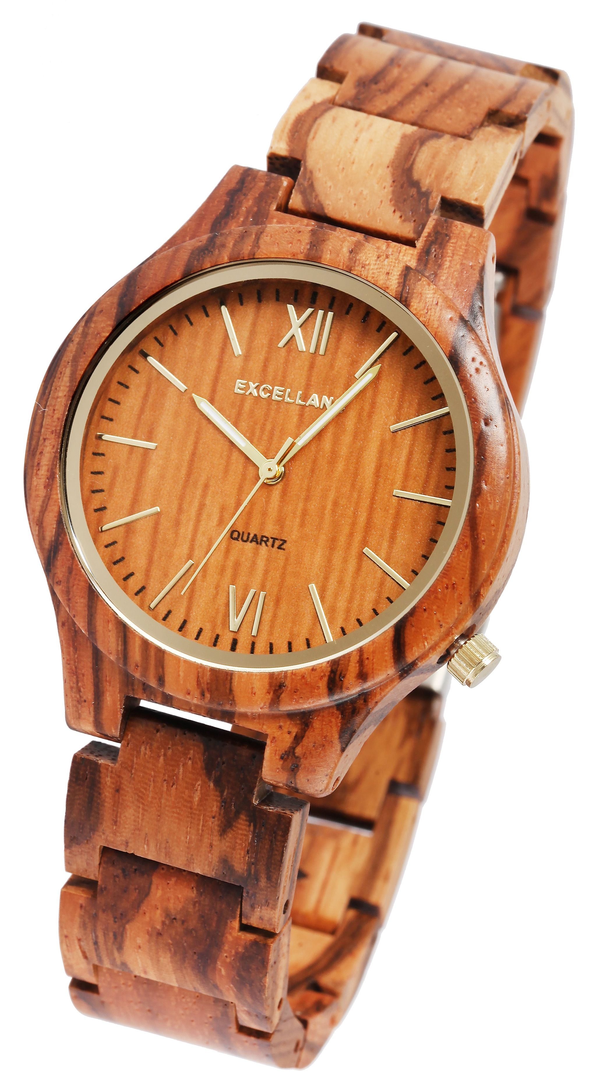 Productinformatie "Excellanc Damen Armbanduhr aus Zebraholz mit Edelstahl Faltschließe"