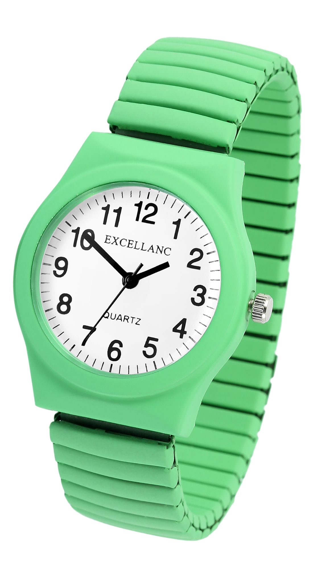 Het analoge damespolshorloge met 3 wijzers van het merk Excellanc heeft een hoogwaardig kwartsuurwerk. De roestvrijstalen trekband is 18 mm breed bij de lug en is bijzonder gemakkelijk over de pols te trekken dankzij de flexibiliteit. Het horloge is ook zeer comfortabel om te dragen dankzij de lichtheid en flexibiliteit. De totale lengte van het horloge is 19 cm. De lengte van de armband kan worden aangepast aan elke pols. De metalen kast met mineraalglas heeft een diameter van 34 mm en een kasthoogte van 10 mm. De achterkant van de kast is gemaakt van roestvrij staal. Met zijn trendy neonkleuren is dit horloge het perfecte accessoire voor een modieuze look, waardoor het een highlight is om elke pols.