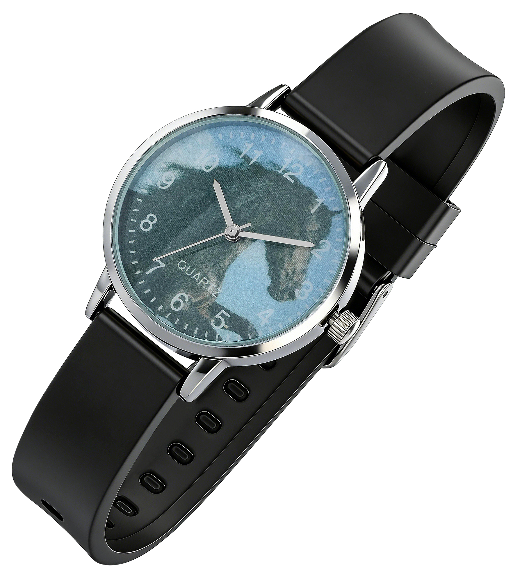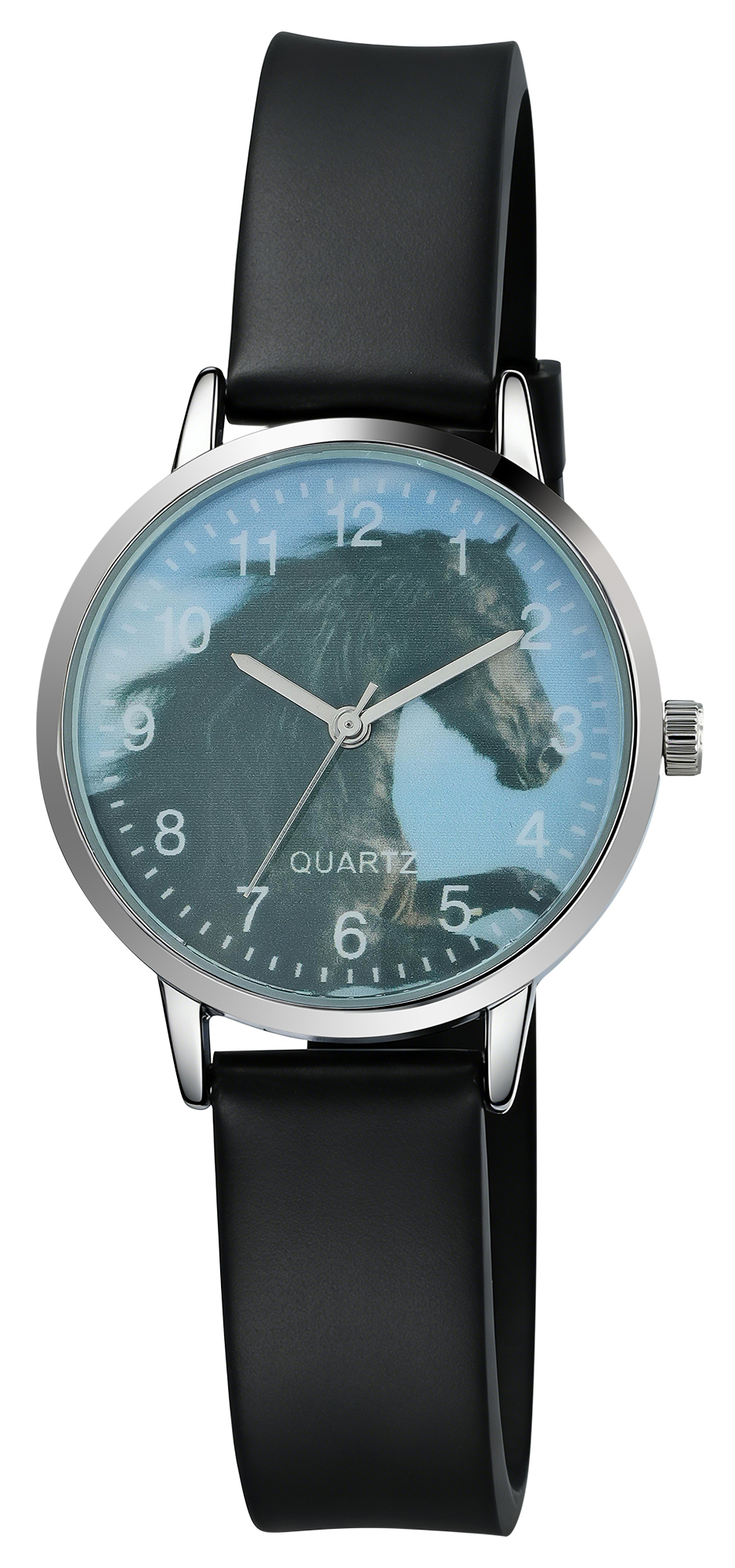 Productinformatie "Excellanc Damenuhr/ Jugenduhr "Pferd“ Ø 32 mm, schwarzes Silikonband"