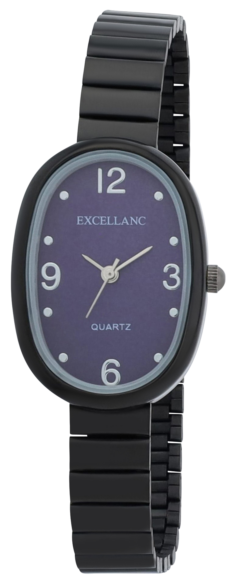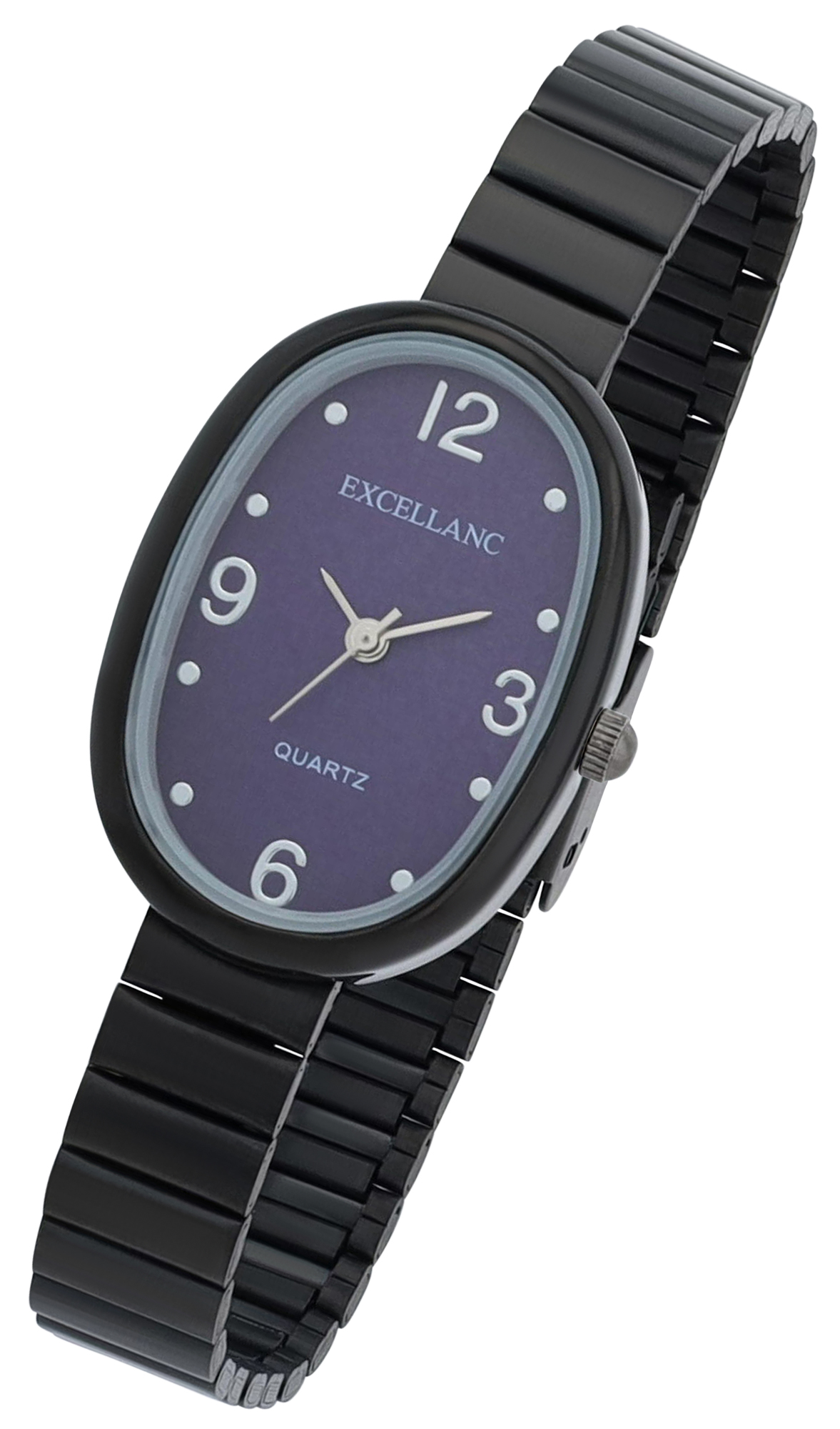 Productinformatie "Excellanc Damenuhr - Oval mit Metallband, Schwarz/ Blau"