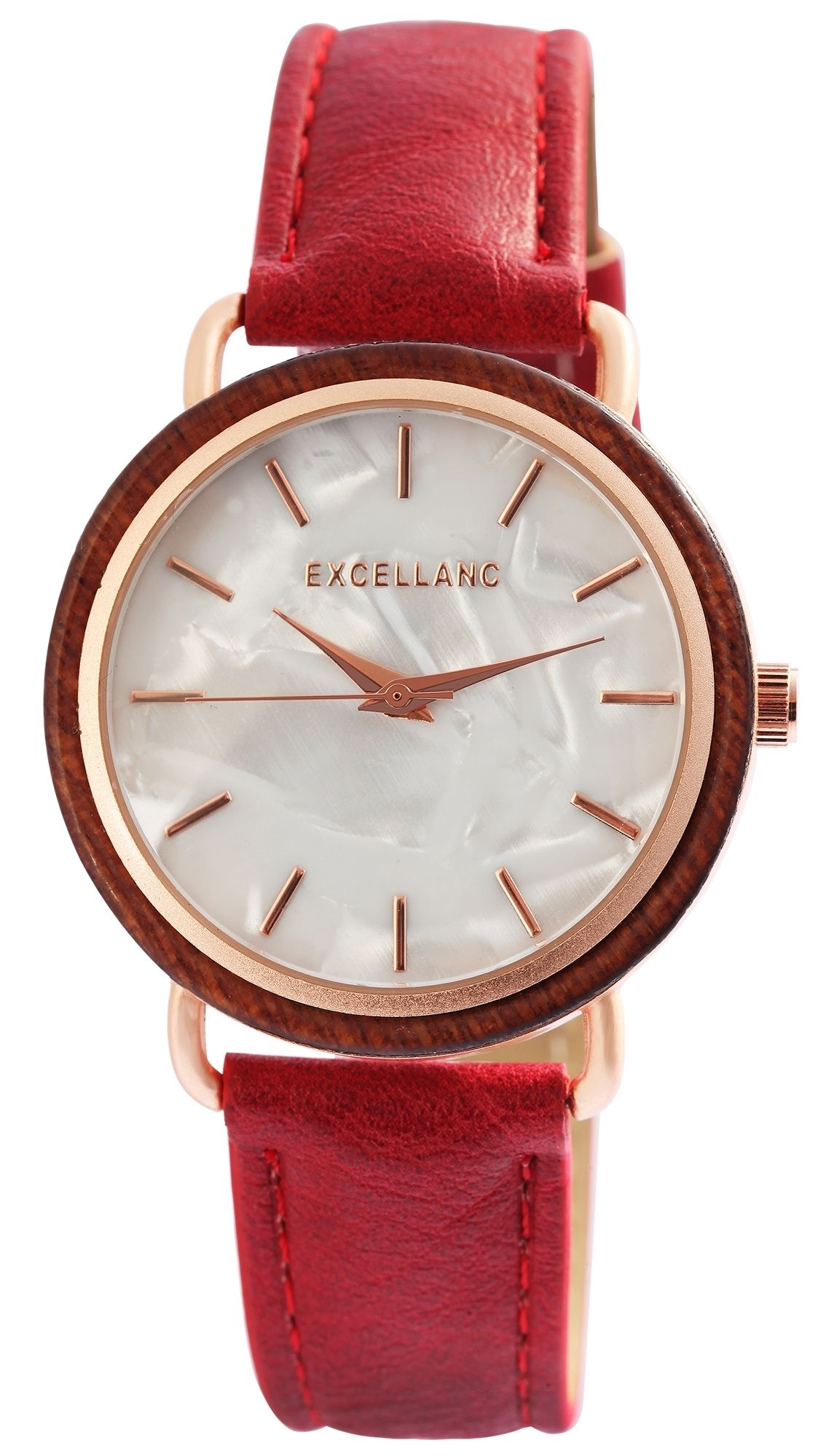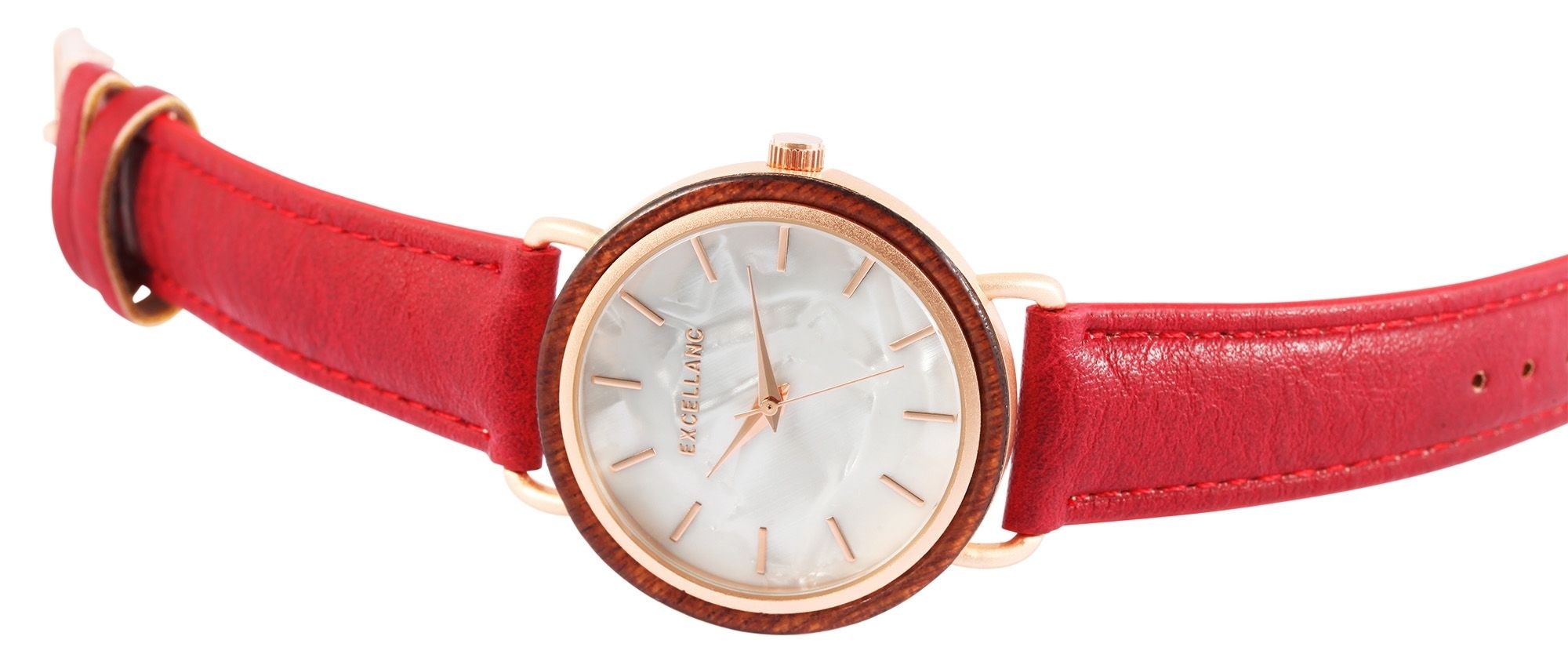 Productinformatie "Excellanc Damenuhr mit Band aus Lederimitat, Gehäusering aus Holz"
