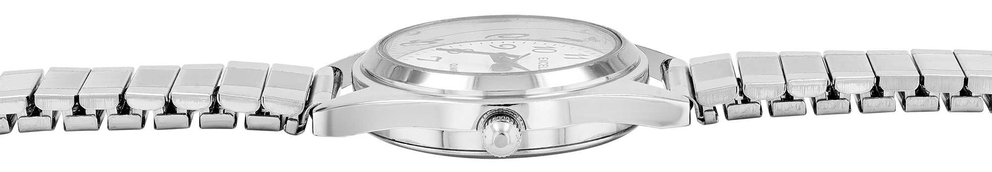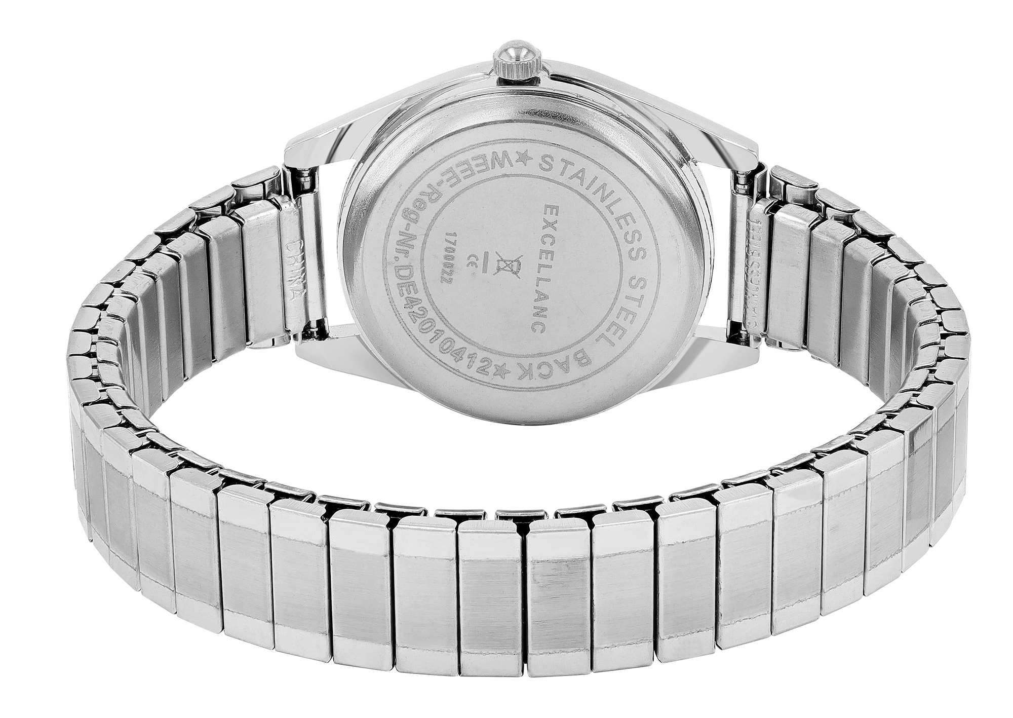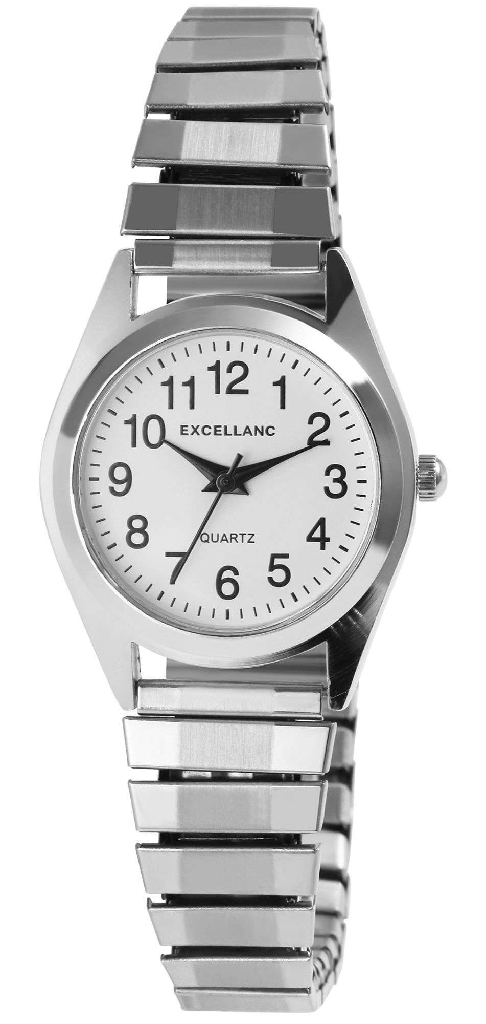 Het analoge damespolshorloge met 3 wijzers van het merk Excellanc heeft een hoogwaardig kwartsuurwerk. De roestvrijstalen trekband is 14 mm breed bij de lug en is bijzonder comfortabel en gemakkelijk over de pols te trekken dankzij de flexibele band. De totale lengte van het horloge is 20 cm. De metalen kast met mineraalglas heeft een diameter van 28 mm en een kasthoogte van 8 mm. De achterkant van de kast is gemaakt van roestvrij staal. Dankzij de eenvoudige wijzerplaat en duidelijke lay-out is de tijd in één oogopslag af te lezen.