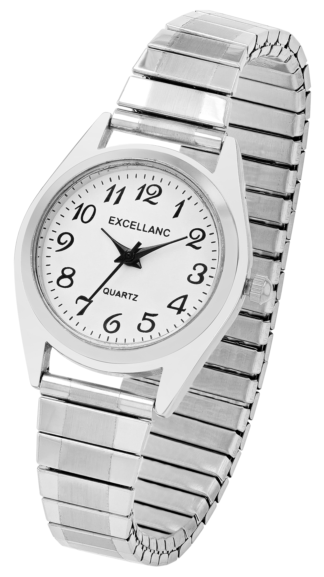 Productinformatie "Excellanc Damenuhr mit Edelstahl-Zugarmband Ø 28 mm, silberfarben/ weiß"