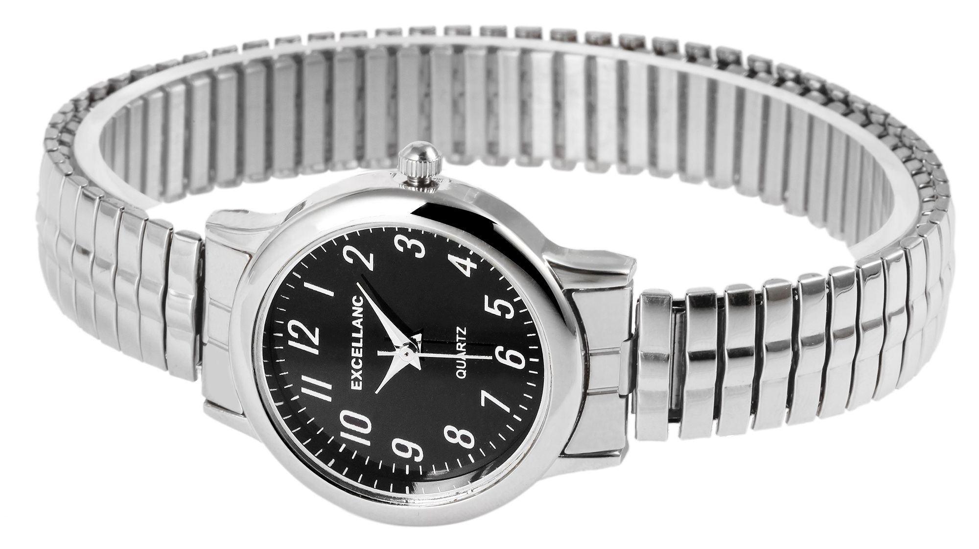 Productinformatie "Excellanc Damenuhr mit Edelstahlzugarmband, silberfarben/schwarz"