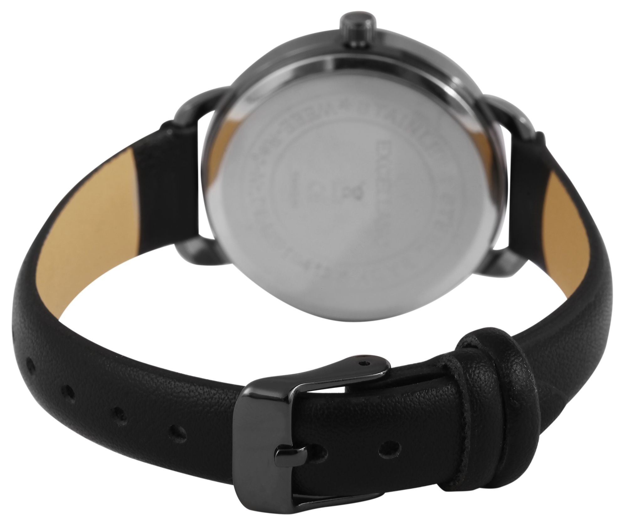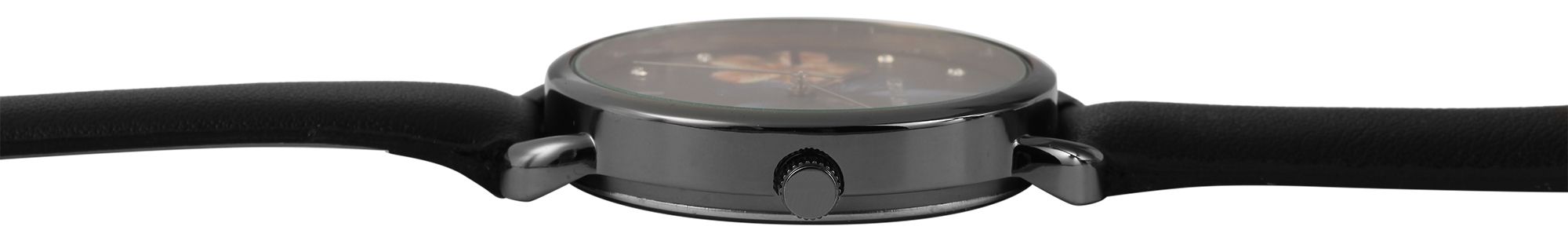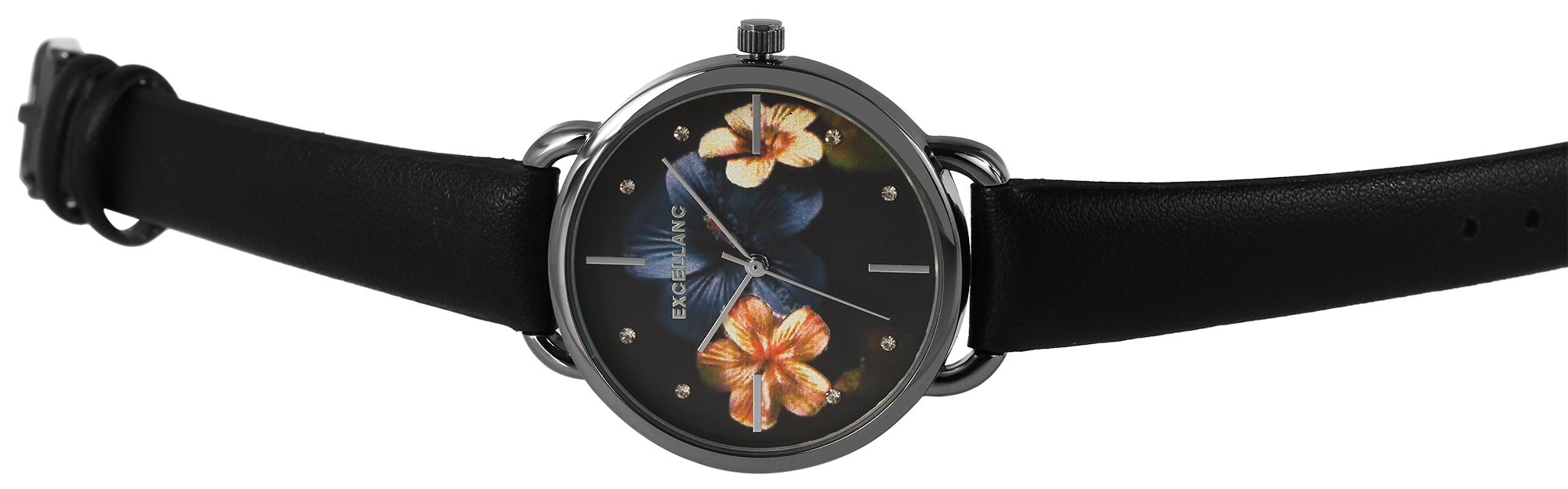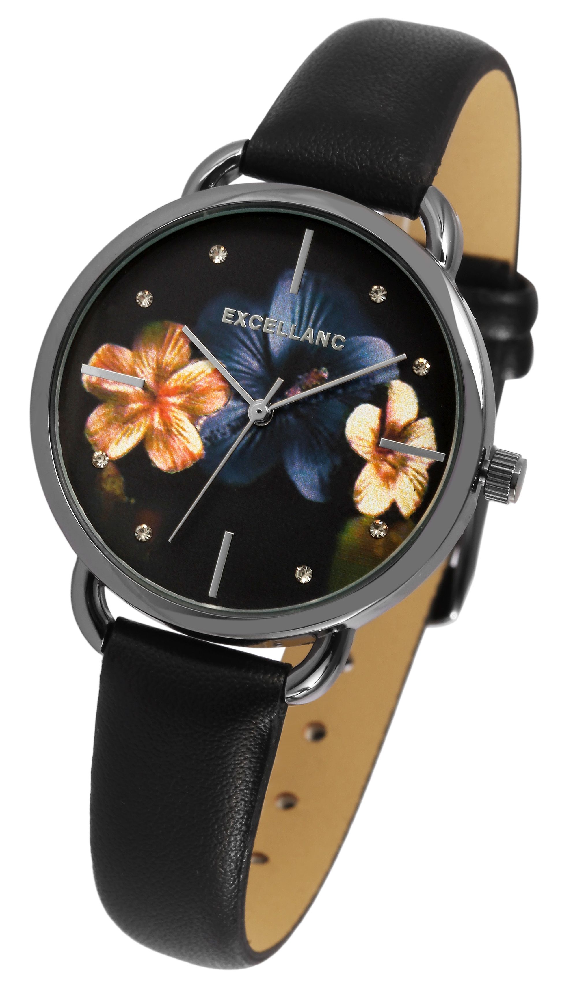 Productinformatie "Excellanc Damenuhr mit Lederimitationsarmband, floral, schwarz"
