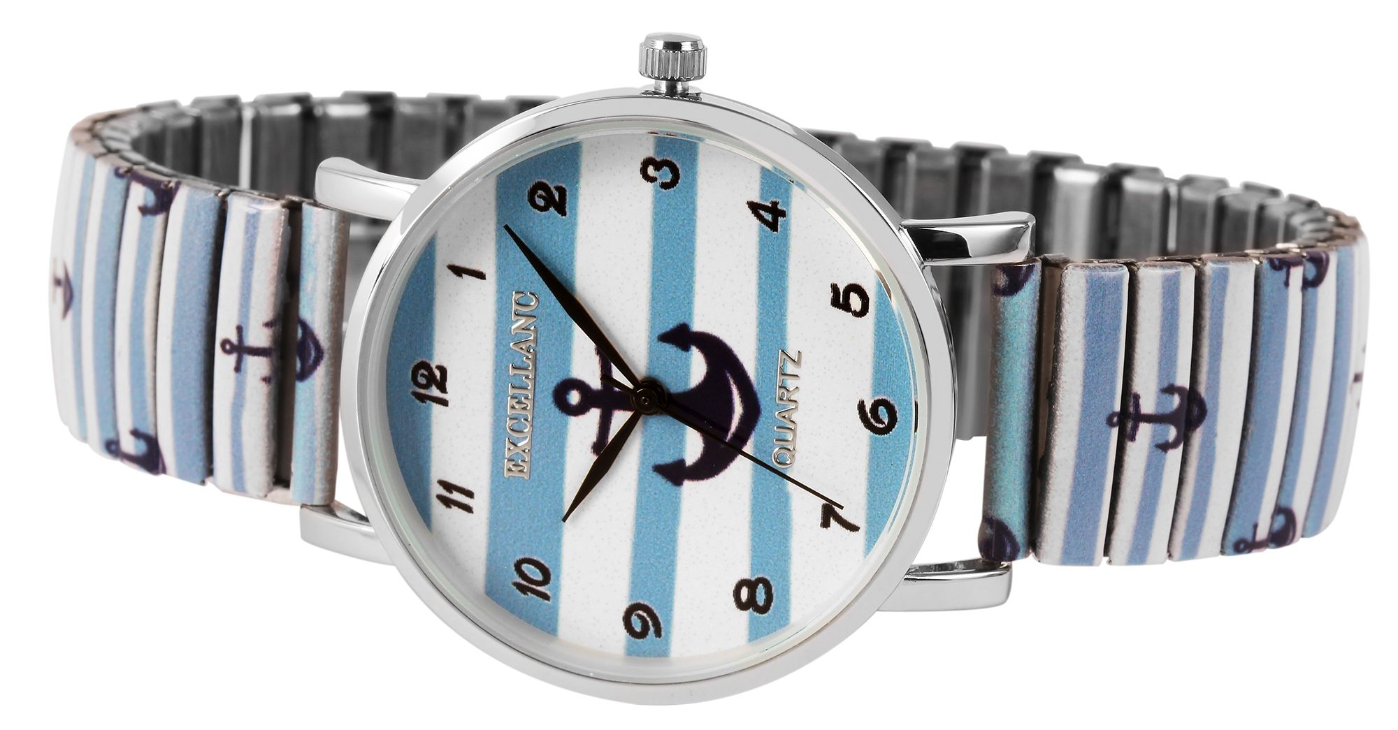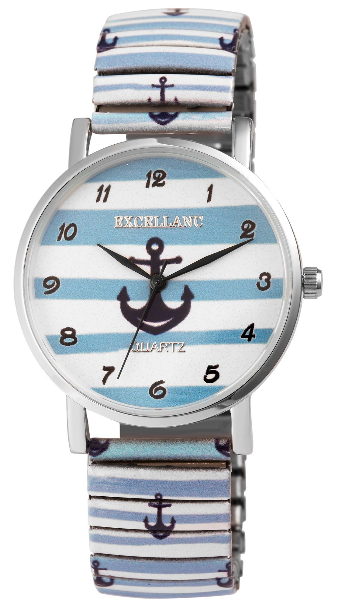 Productinformatie "Excellanc Damenuhr mit Zugarmband, Edelstahl, maritim"