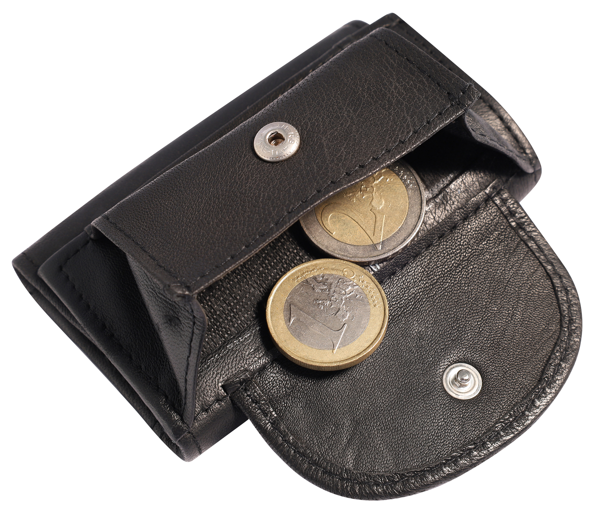 Hoewel hij klein is, 9,5 x 6 x 2,5 cm, biedt de portemonnee verbazingwekkend veel opbergruimte:2 compartimenten voor biljetten voor een duidelijke scheiding.1 muntcompartiment met veilige drukknoopsluiting.1 praktisch sleutelcompartiment, inclusief een sleutelring (Ø 25 mm). De compacte portemonnee is ideaal als praktische metgezel voor hem en haar.