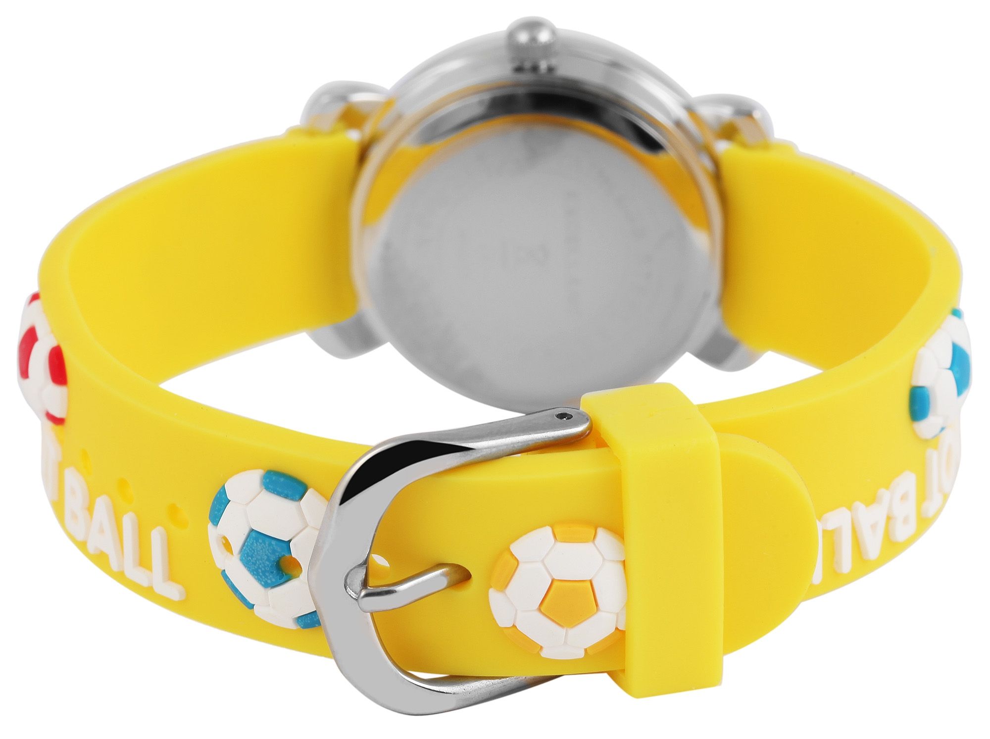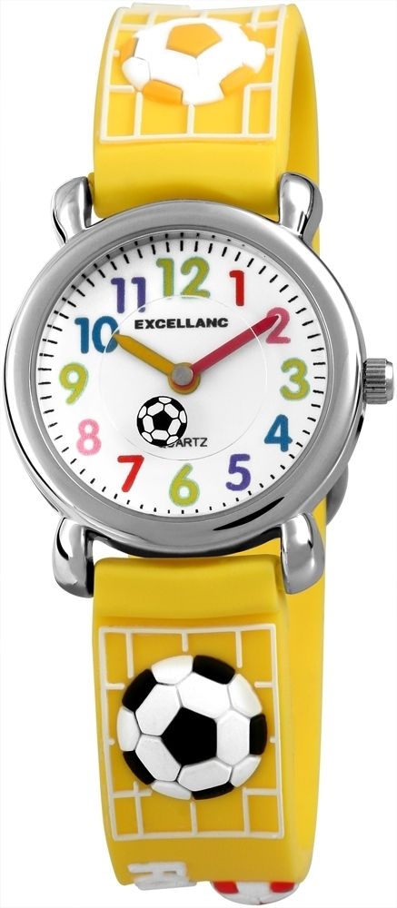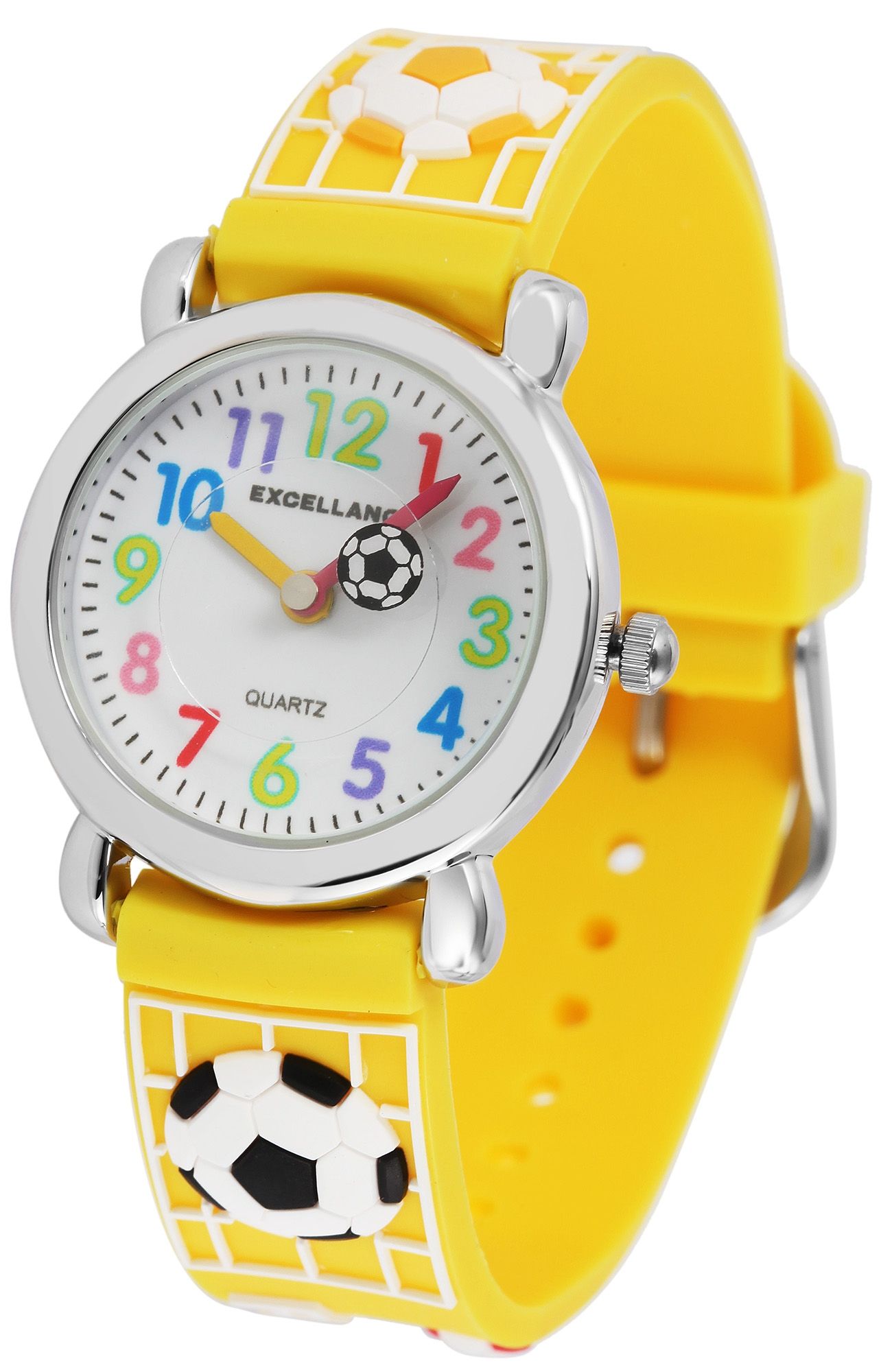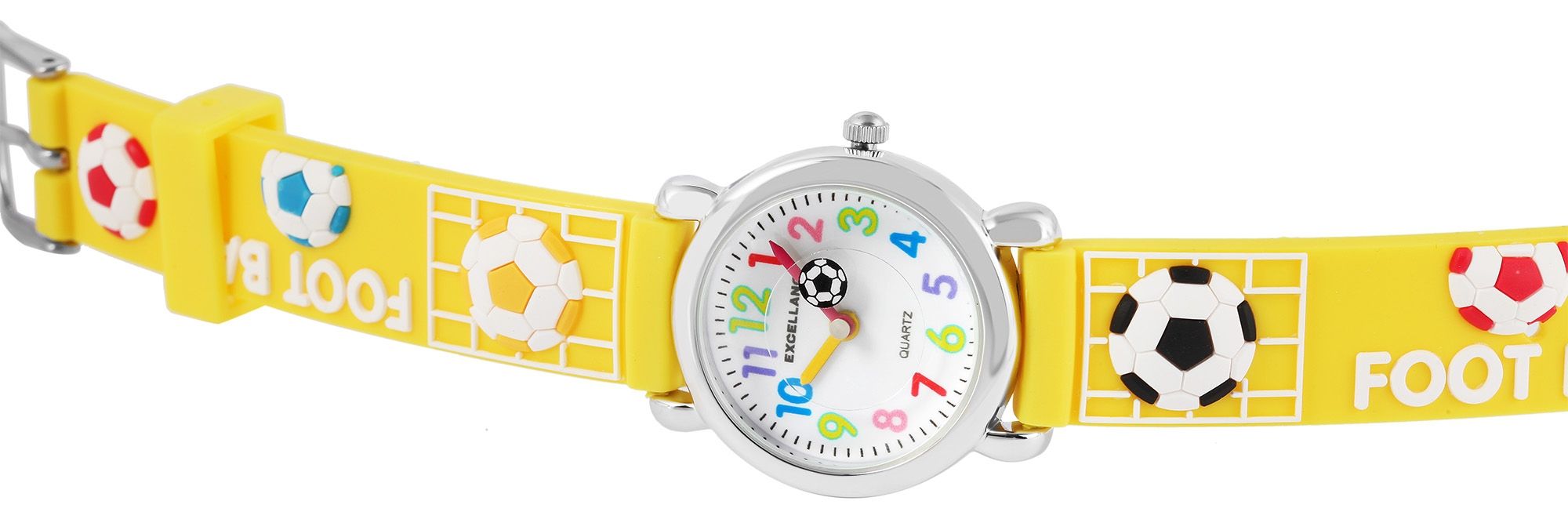 Productinformatie "Excellanc Kinderuhr mit gelben Silikonarmband und Fußball Motiv"