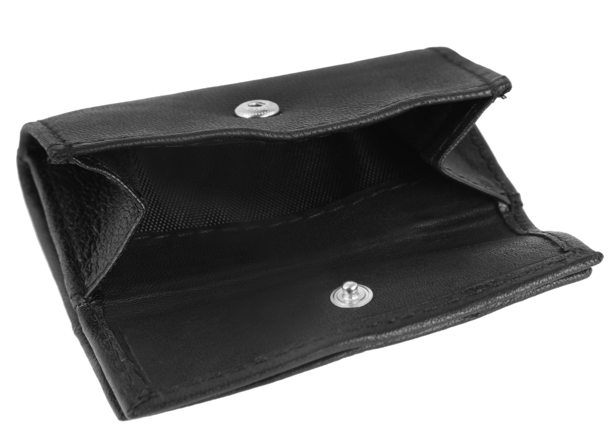 Die schwarze Mini-Geldbörse im Querformat der Marke Excellanc wurde aus echtem Leder gefertigt. Das Innenfutter besteht ebenfalls aus Echtleder. Die Naht, mit der die Geldbörse vernäht ist und für Stabilität und Halt sorgt, ist auch schwarz. Mit jeweils zwei Druckknopfverschlüssen wird sowohl das Münzfach, als auch das Geldscheinfach verschlossen. Trotz der minimalistischen Größe zeigt sich die Geldbörse als praktischer Begleiter für Sie und Ihn. Die Geldbörse verfügt über 1 Geldscheinfach, 1 Münzfach und 1 Einsteckfach. Die Größe ergibt sich aus einer Länge von 5,2 cm, einer Breite von 8,7 cm und einer Stärke von 2 cm. Ob auf Reisen oder für den täglichen Bedarf, klein und kompakt ist der Geldbeutel ein idealer Gefährte zu zahlreichen Gelegenheiten.