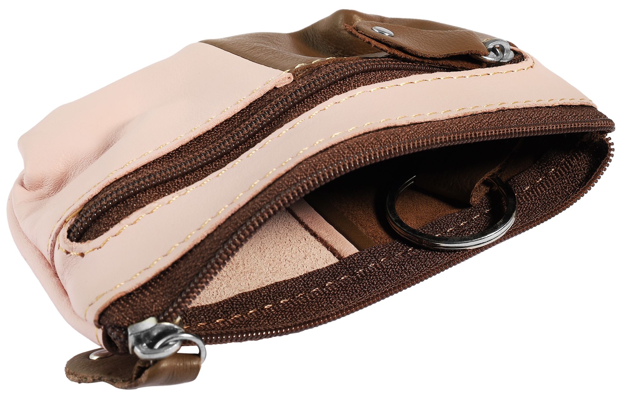 Productinformatie "Excellanc Schlüsselbeutel aus Echtleder, dunkelbraun/rosa"