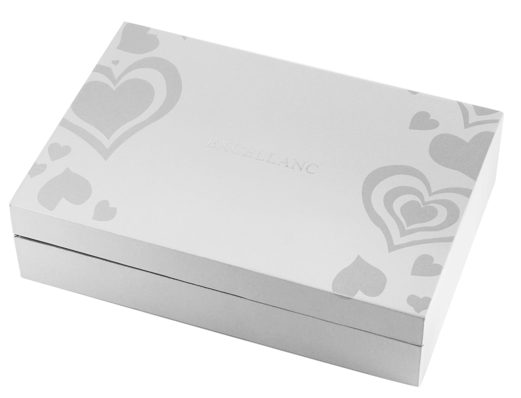 De cadeauset van het merk Excellanc bestaat uit een damespolshorloge, een halsketting, een paar oorstekers en een vingerring. Alle sieraden zijn zilverkleurig en versierd met witte edelstenen. Het patroon van een hart is terug te vinden in de hanger van het collier, de oorstekers en de vingerring en completeert de harmonieuze combinatie van alle sieraden, die worden geleverd in een praktisch, scharnierend doosje. De hanger van het collier, de oorstekers en het hoofd van de ring bestaan uit een grote hartvormige similietsteen, elk omringd door 16 kleine edelsteentjes. De ring heeft ook een open ringband zodat de maat kan worden aangepast. De lengte van de curb chain ketting is 58 cm inclusief een verlengkettinkje van 6 cm. Dit maakt het mogelijk om de lengte te variëren en de moderne sieradenketting aan te passen aan elke outfit. Het polshorloge is een klassiek 3-hands horloge met een hoogwaardig quartz uurwerk. Het heeft een lengte van 22 cm, een kastdiameter van 36 mm en een kasthoogte van 9 mm. De lunette is versierd met 56 Similis-stenen en past perfect bij de glinsterende sieradenset. De geschenkdoos is 14,8 cm lang, 21,5 cm breed en 5,8 cm hoog.