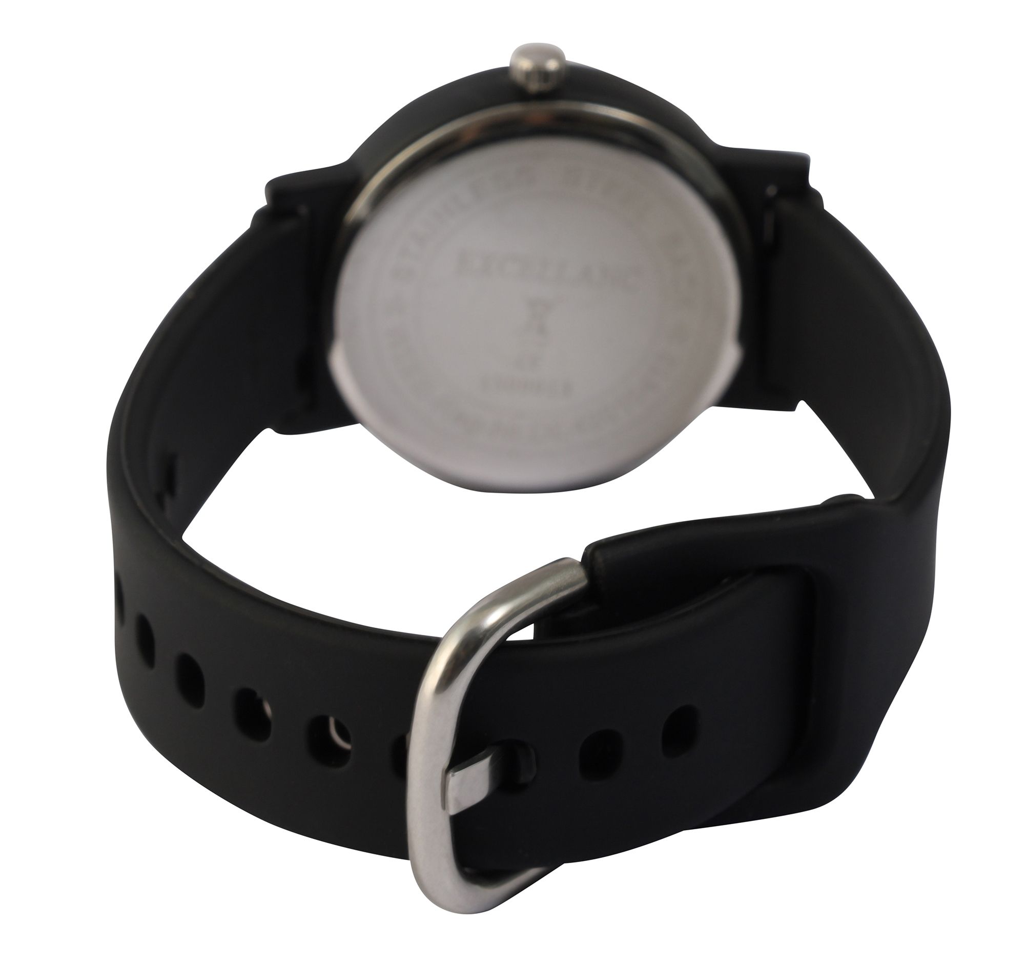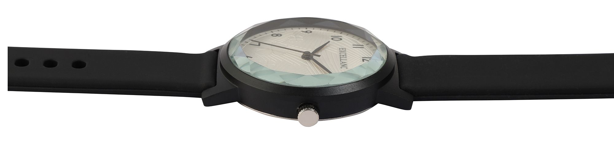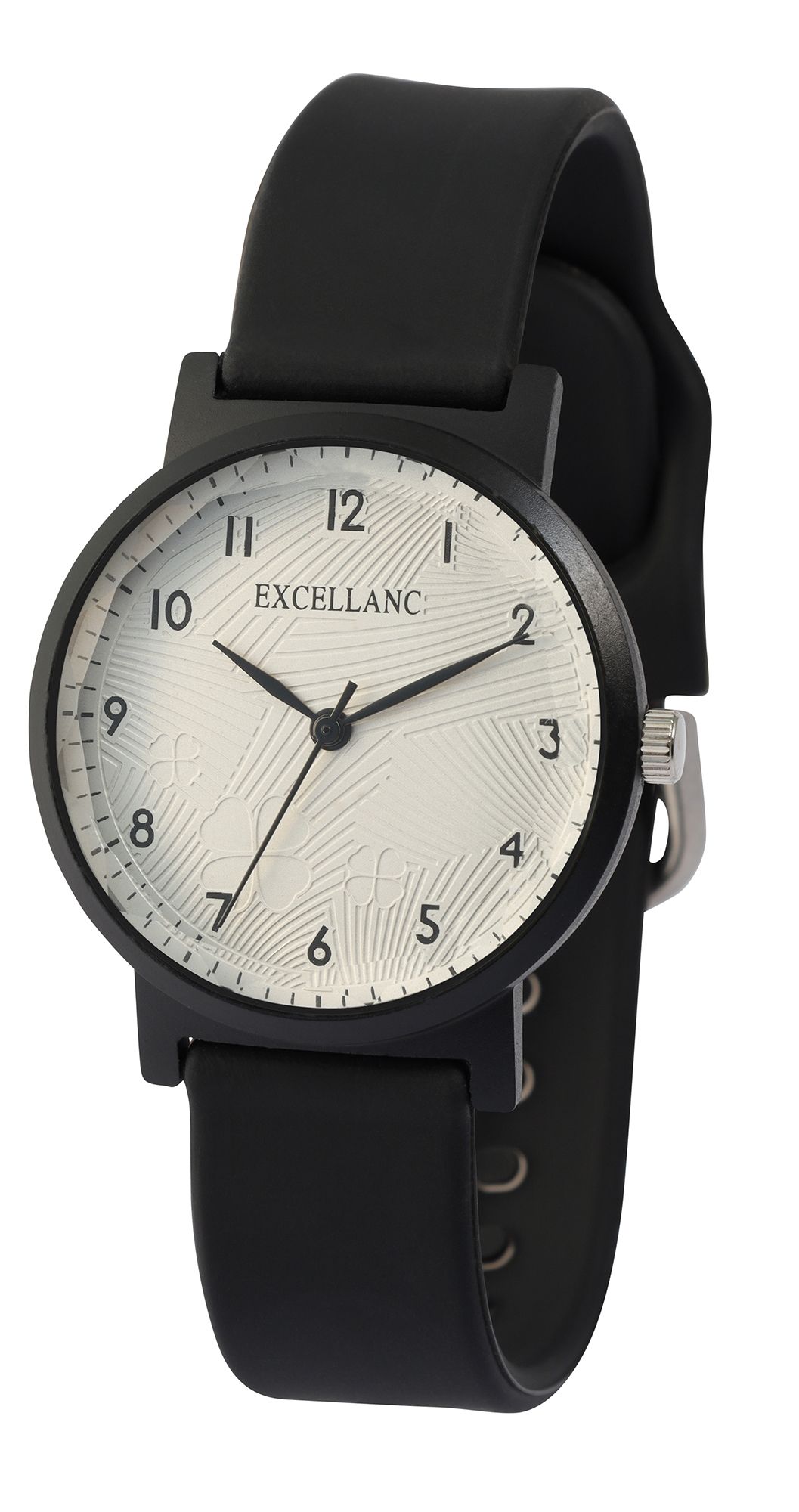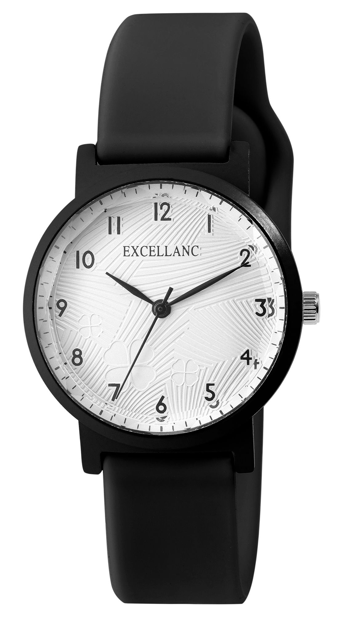 Productinformatie "Excellanc dameshorloge, 3 wijzers/analoog, siliconen band, facet geslepen mineraalglas, zwart"