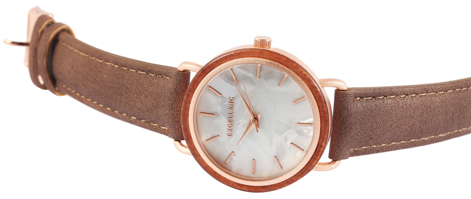 Productinformatie "Excellanc dameshorloge met imitatieleren band, houten kastring"