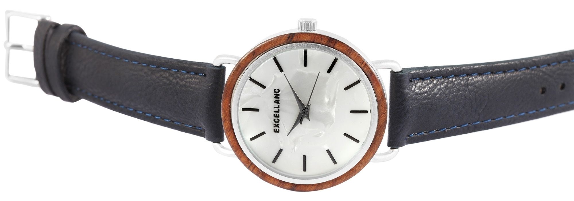 Productinformatie "Excellanc dameshorloge met imitatieleren band, houten kastring"
