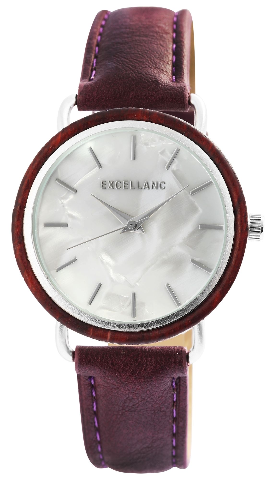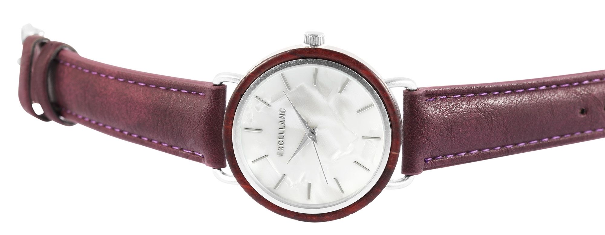 Productinformatie "Excellanc dameshorloge met imitatieleren band, houten kastring"
