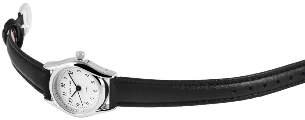 Het analoge dameshorloge van het merk Excellanc heeft een hoogwaardig kwartsuurwerk. De imitatieleren band is 12 mm breed en opent met een gesp. De totale lengte is 21 cm. De metalen kast met mineraalglas meet 23 mm en is 6 mm hoog. De kastdeksel is gemaakt van roestvrij staal.