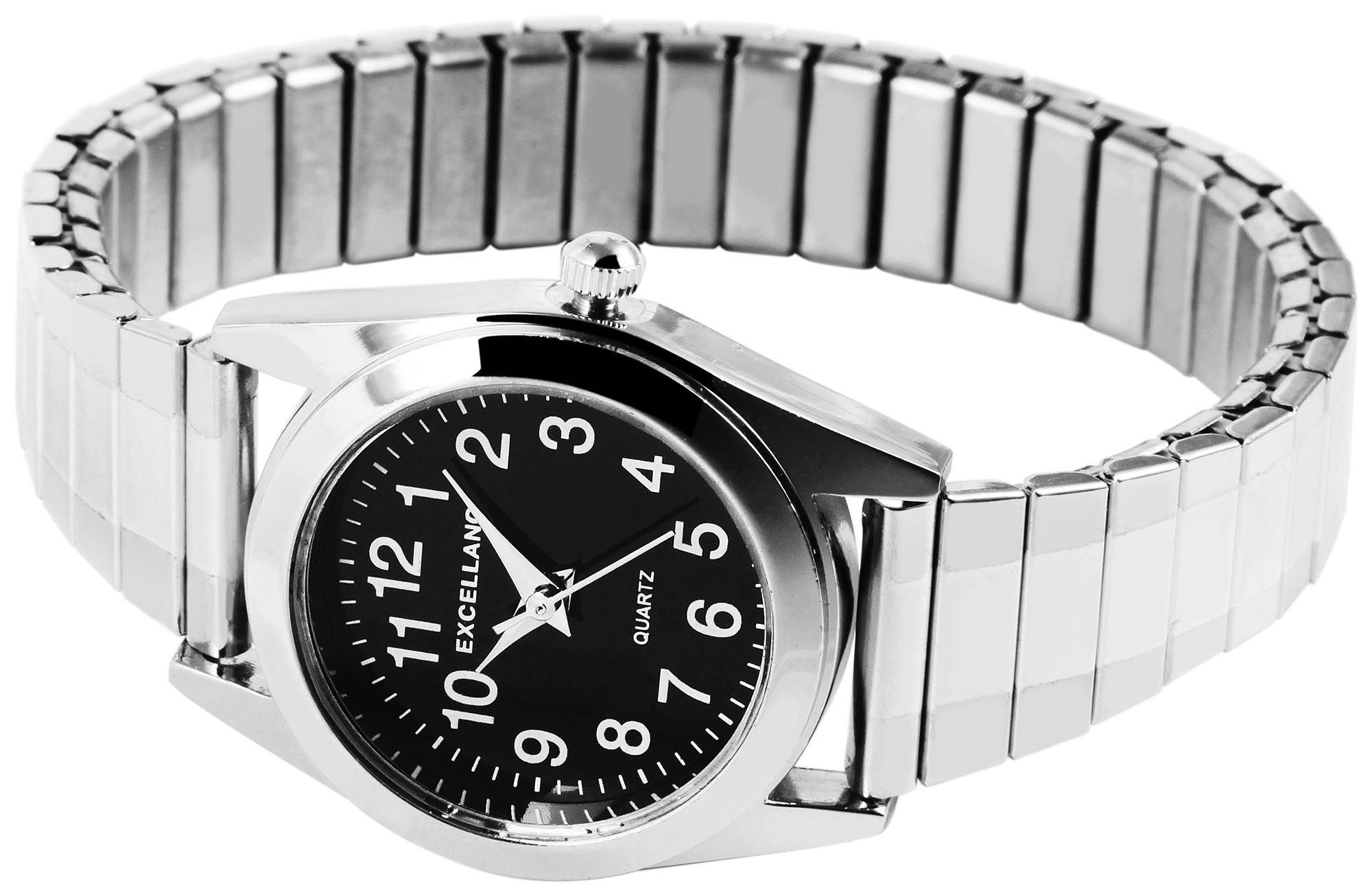 Het analoge damespolshorloge met 3 wijzers van het merk Excellanc heeft een hoogwaardig kwartsuurwerk. De roestvrijstalen trekband is 14 mm breed bij de lug en is bijzonder comfortabel en gemakkelijk over de pols te trekken dankzij de flexibele band. De totale lengte van het horloge is 20 cm. De metalen kast met mineraalglas heeft een diameter van 28 mm en een kasthoogte van 8 mm. De achterkant van de kast is gemaakt van roestvrij staal. Dankzij de eenvoudige wijzerplaat en duidelijke lay-out is de tijd in één oogopslag af te lezen.