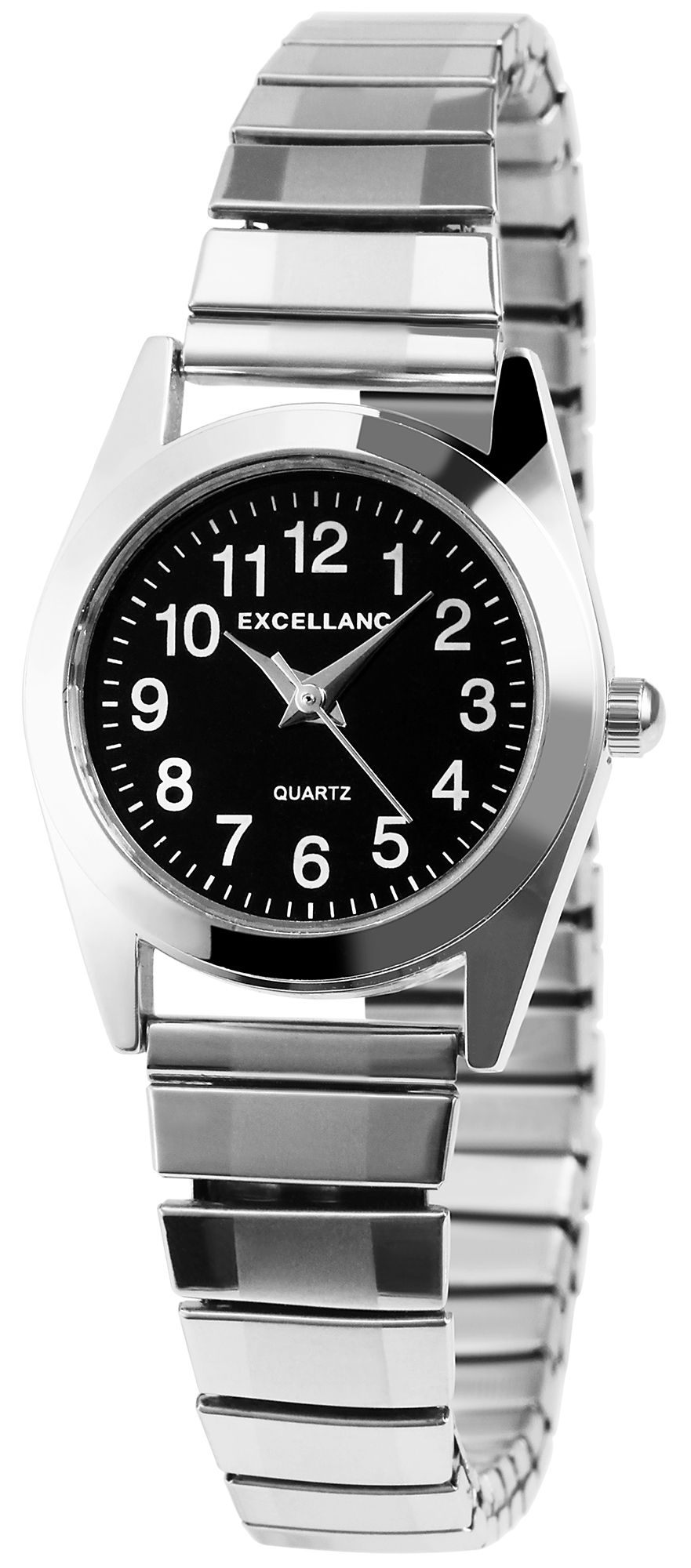 Productinformatie "Excellanc dameshorloge met roestvrijstalen schakelarmband Ø 28 mm, zilverkleurig/zwart"