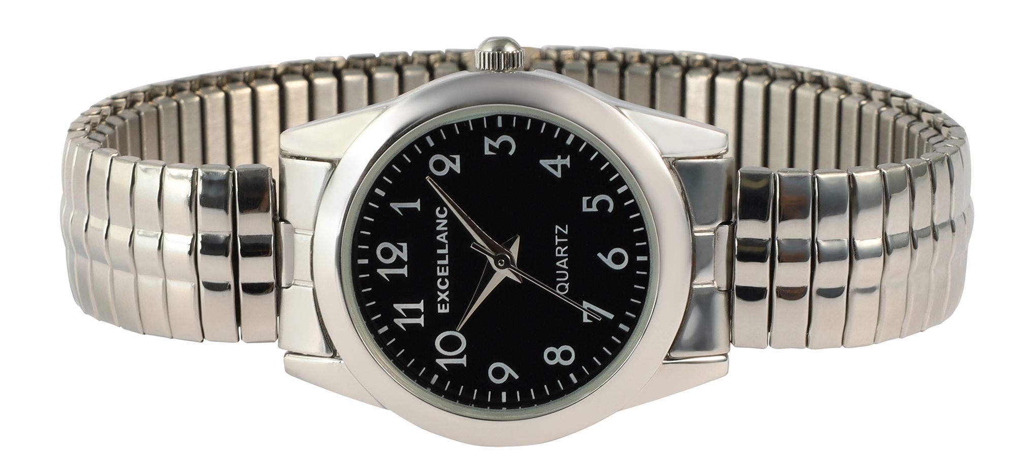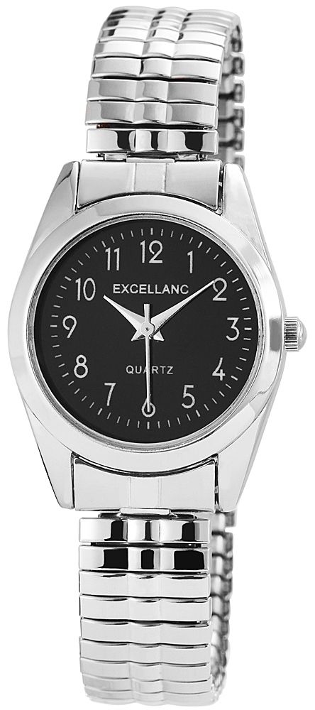 Het analoge damespolshorloge met 3 wijzers van het merk Excellanc heeft een hoogwaardig kwartsuurwerk. De zilverkleurige roestvrijstalen trekband is 13 mm breed bij de lug en is bijzonder comfortabel en gemakkelijk over de pols te trekken dankzij de flexibele band. De totale lengte van het horloge is 18 cm. De zilverkleurige metalen kast met mineraalglas heeft een diameter van 28 mm en een kasthoogte van 7,5 mm. De achterkant van de kast is gemaakt van roestvrij staal. Het contrast tussen de zwarte wijzerplaat en de zilverkleurige wijzers en witte indexen maakt het gemakkelijk om in één oogopslag de tijd te zien. Dit tijdloze horlogemodel is een echte klassieker en daarom ideaal als cadeau voor een geliefde.
