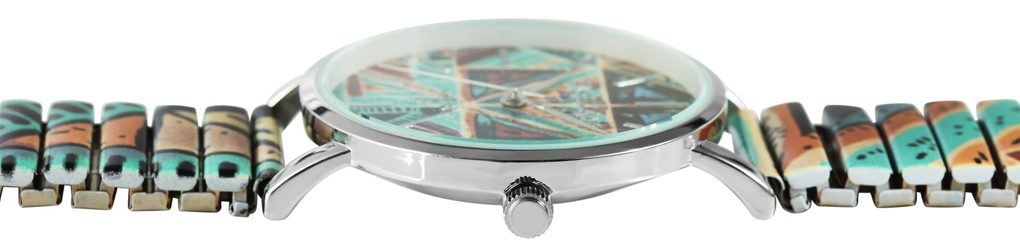 Het analoge damespolshorloge met 3 wijzers van het merk Excellanc heeft een hoogwaardig en nauwkeurig kwartsuurwerk. De roestvrijstalen horlogeband is 18 mm breed bij de lug en is bijzonder gemakkelijk over de pols te trekken dankzij de flexibiliteit. Het horloge is ook zeer comfortabel om te dragen dankzij de lichtheid en flexibiliteit. De totale lengte van het horloge is 19 cm. De lengte van de armband kan worden aangepast aan elke pols. De metalen kast met mineraalglas heeft een diameter van 36 mm en een kasthoogte van 8 mm. De achterkant van de kast is gemaakt van roestvrij staal. Het patroon op de band komt terug in de wijzerplaat, waardoor het horloge een kleurrijk en opvallend uurwerk is. De wijzers hebben dezelfde kleur als de kast en ronden het harmonieuze totaalbeeld van het horloge vakkundig af.
