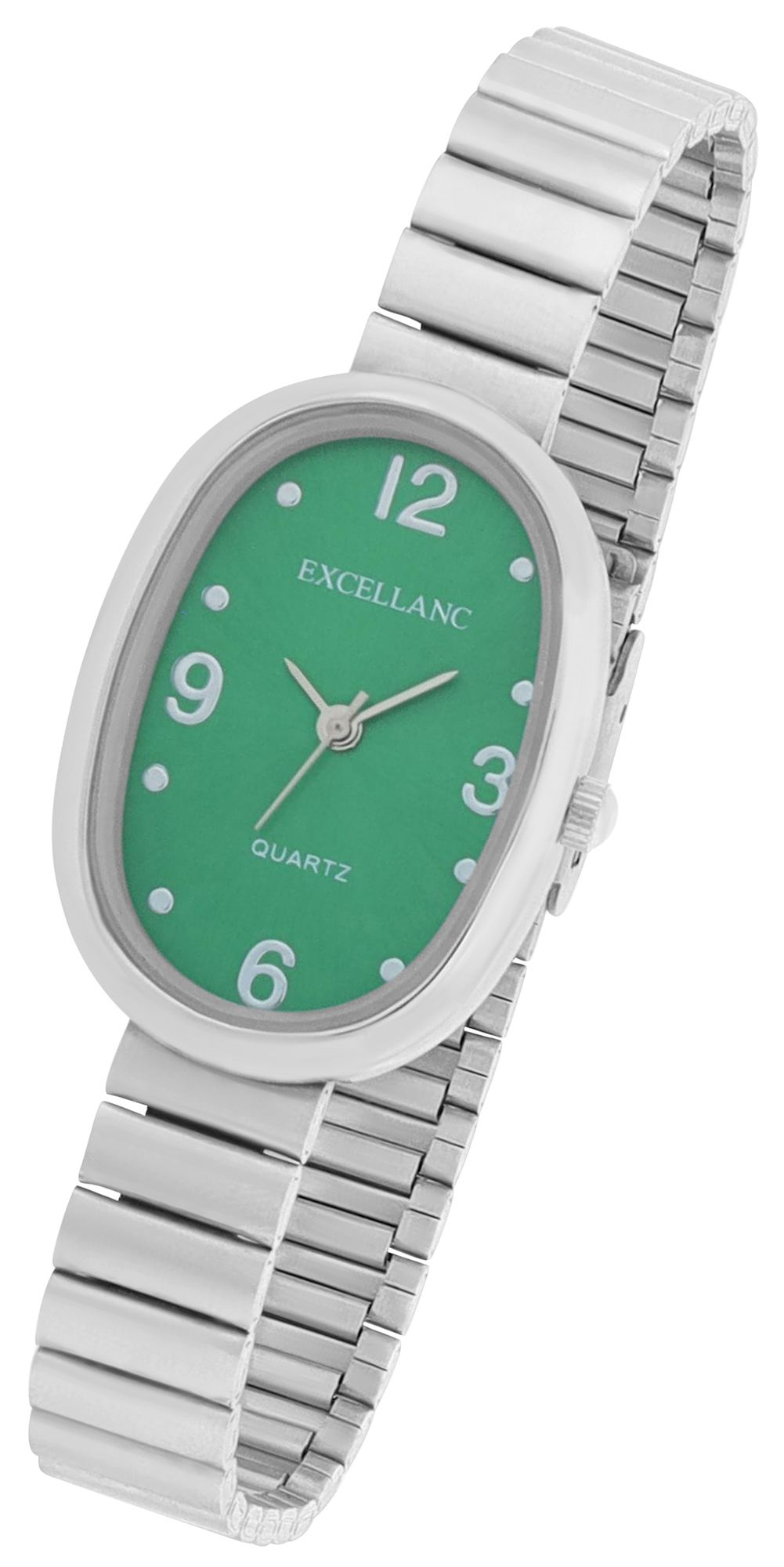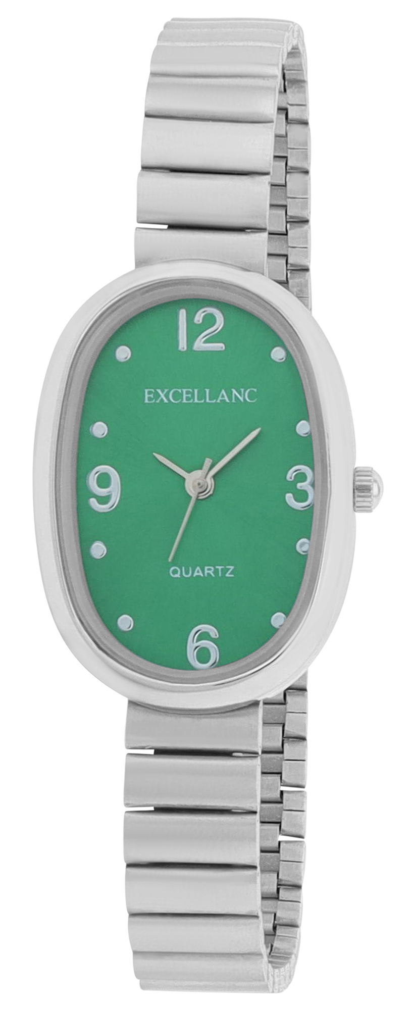 Productinformatie "Excellanc dameshorloge - ovaal met metalen band, zilverkleurig/groen"