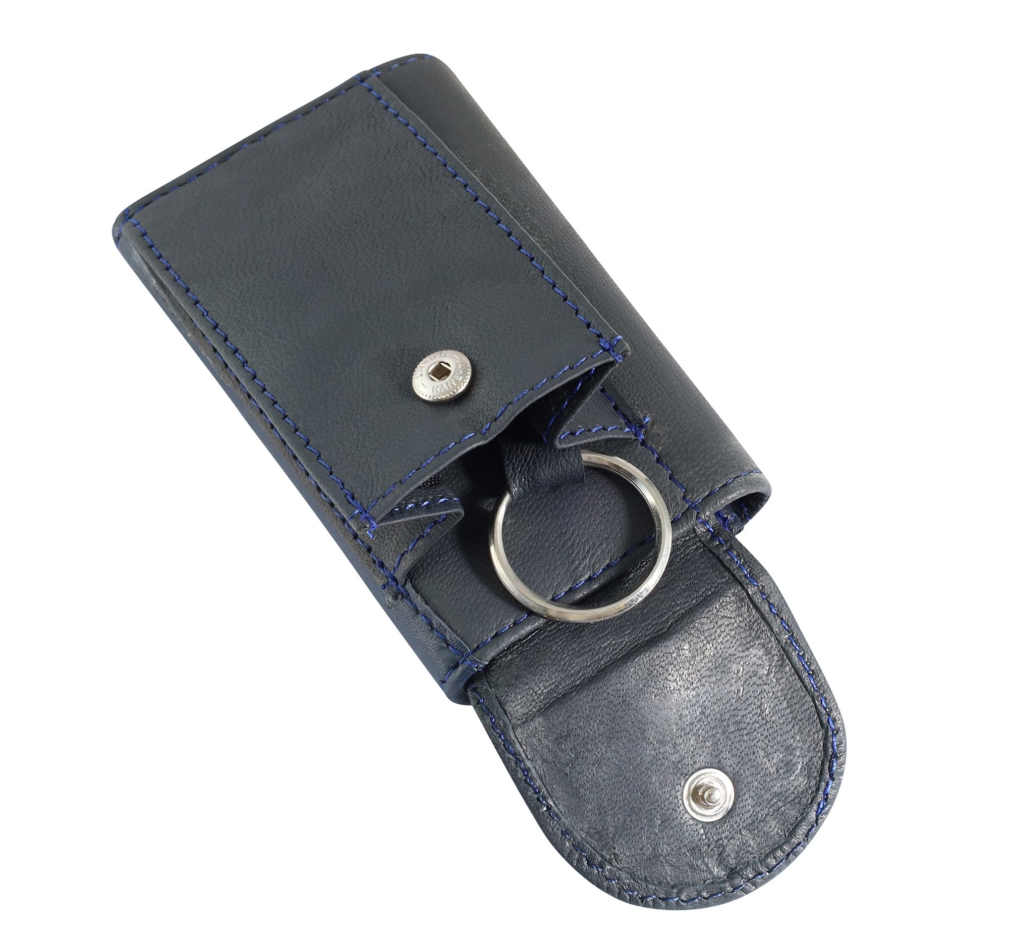 Productinformatie "Excellanc echt lederen mini portemonnee (sleutelvak), donkerblauw"
