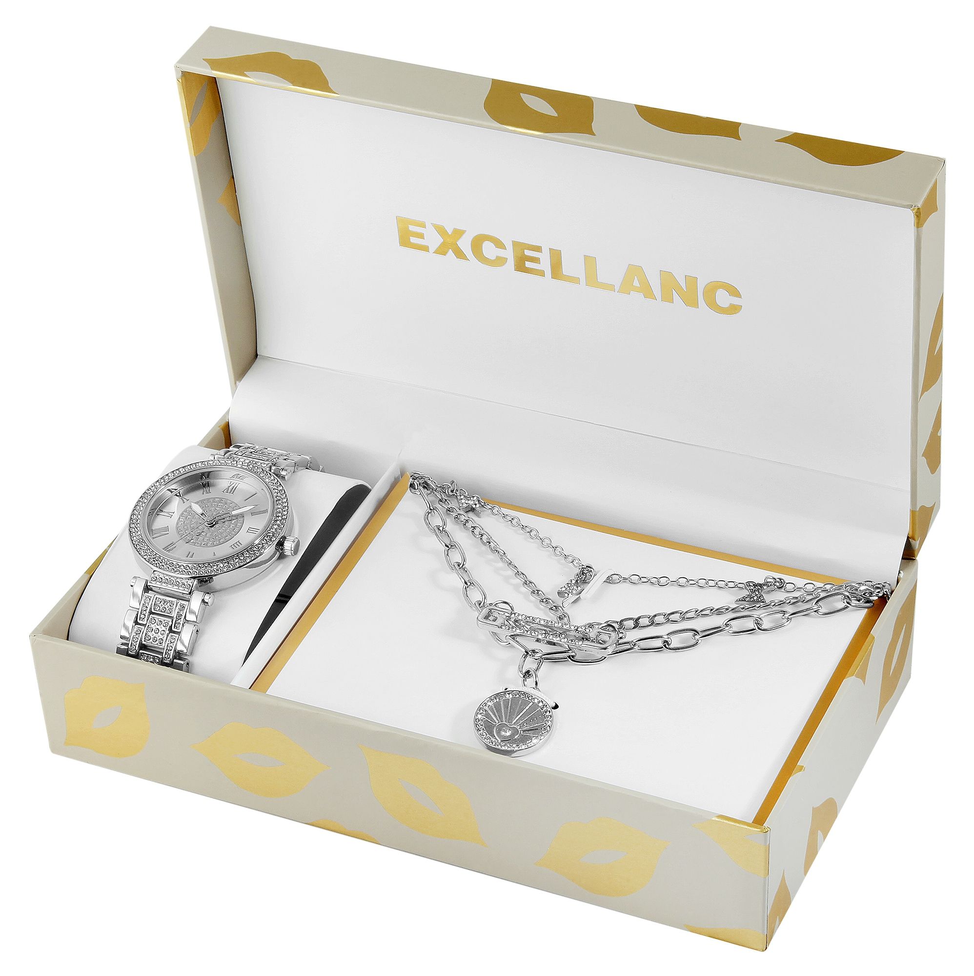 Productinformatie "Excellanc geschenkset met damespolshorloge en drie kettingen, similibre, zilverkleurig"
