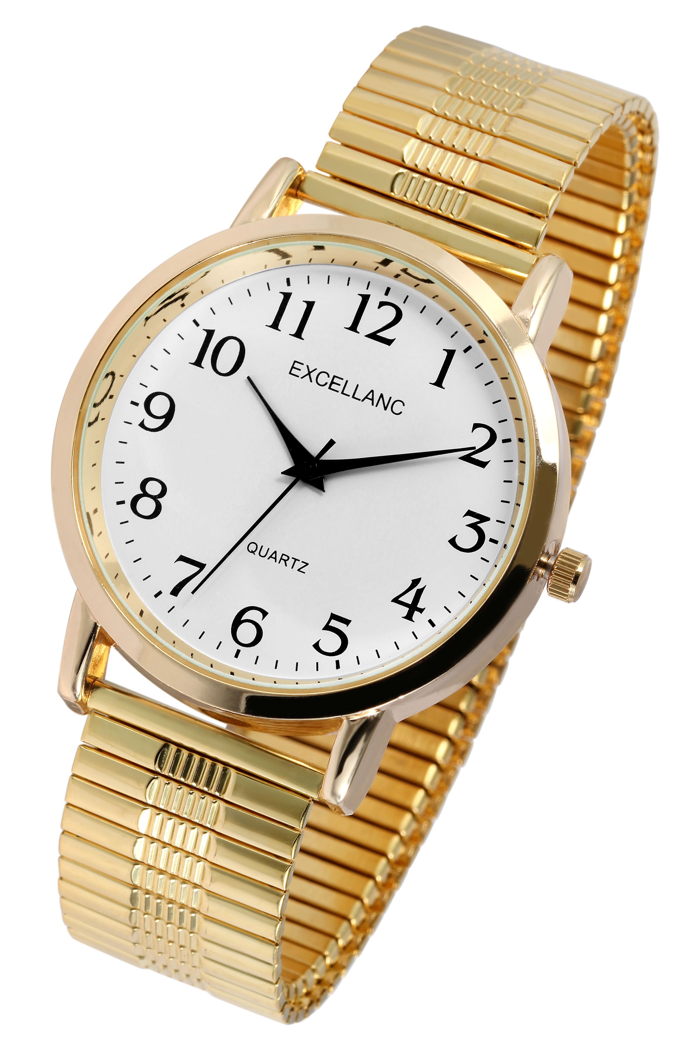 Productinformatie "Excellanc herenhorloge met roestvrijstalen trekband, Ø 38 mm, goudkleurig/wit"